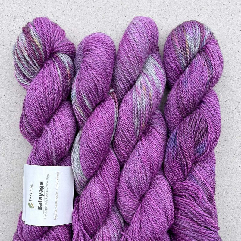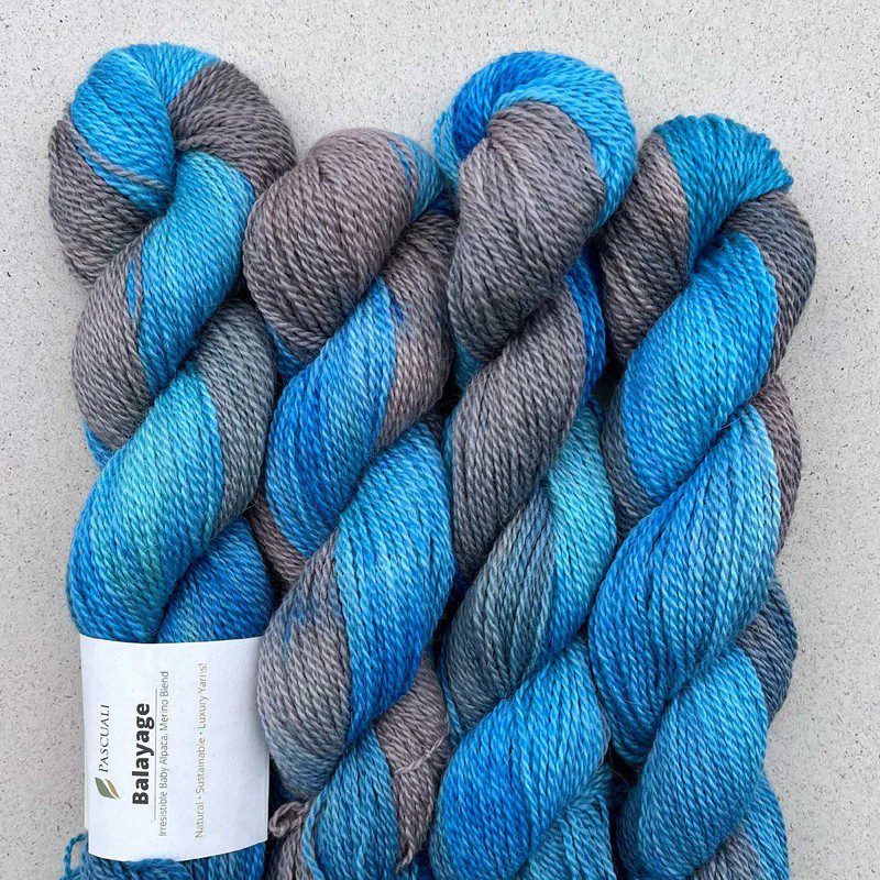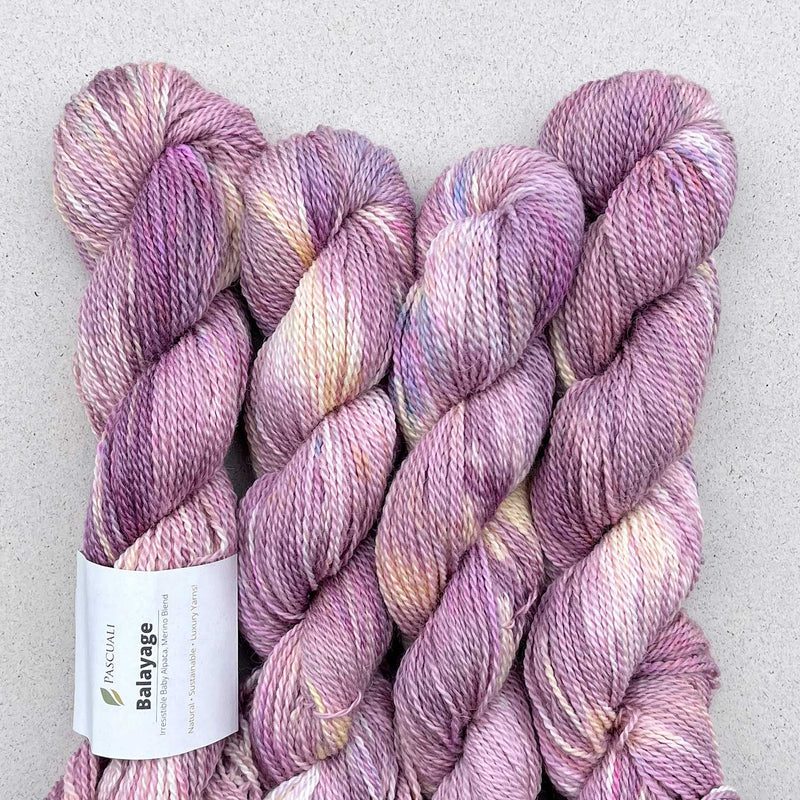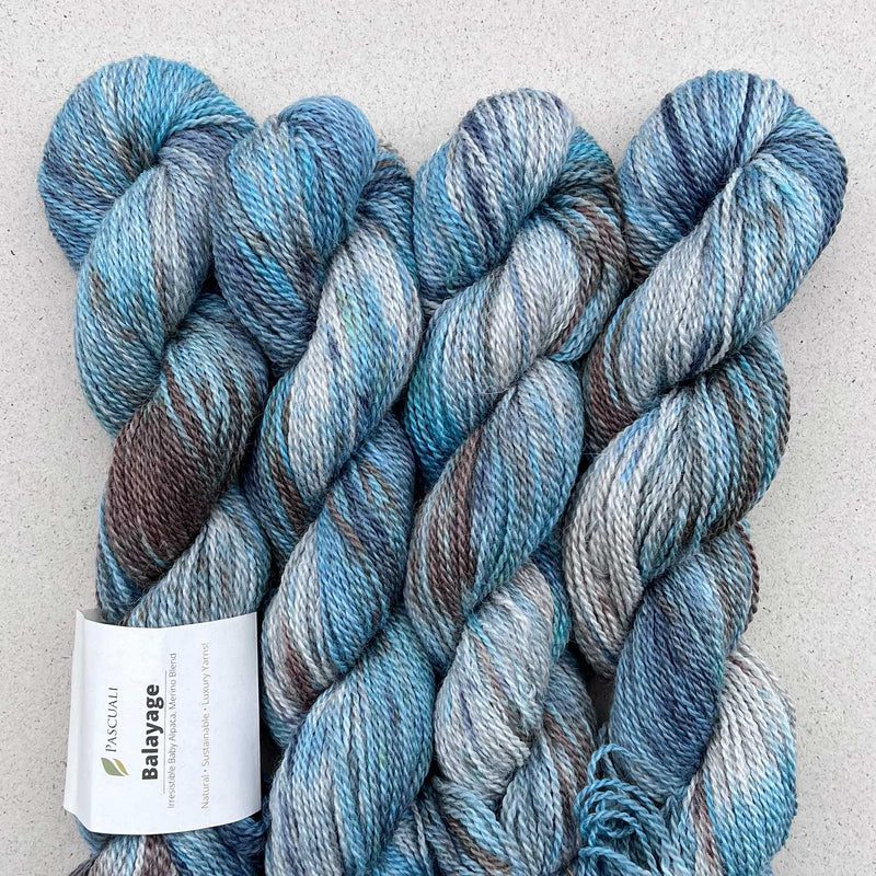 Balayage Pascuali hand dye jest wyjątkową włóczką, stworzona przy współpracy z projektantką Melanie Berg. Powstaje z połączenia 80% białej i szarej baby alpaki oraz 20% białej organicznej wełny z merynosów. Stwarza więc to efekt przejścia kolorów w obrębie poszczególnych nici, a podczas barwienia można uzyskać bardzo naturalne akcenty. Rezultatem są motki włóczki z charakterystycznym efektem balayage, o wielowymiarowym efekcie koloru.