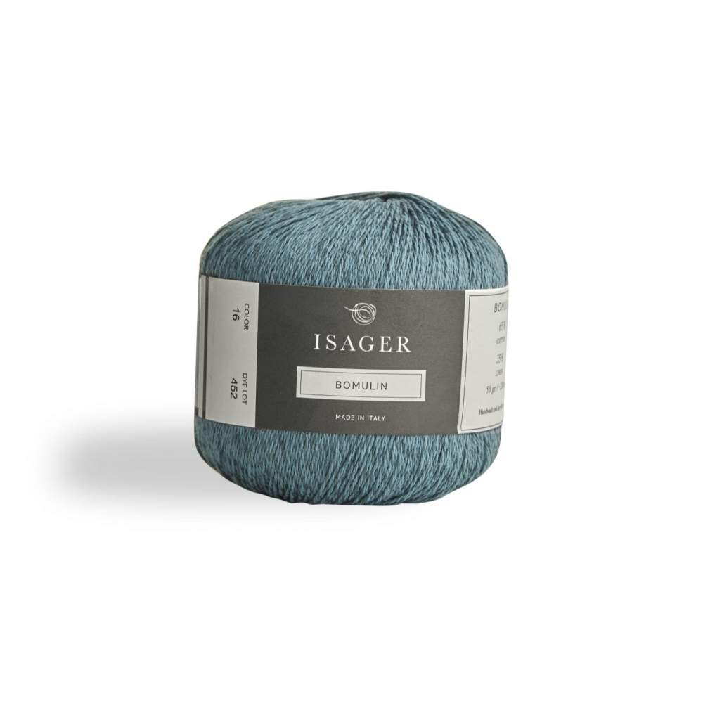 Przędzę Bomulin można połączyć z innymi letnimi włóczkami a także z wełną. Dobierając włóczkę towarzyszącą z oferty marki Isager będziemy mieć łatwiejszy wybór właściwego tonu kolorystycznego. Kierujmy się przy wyborze numerem koloru.