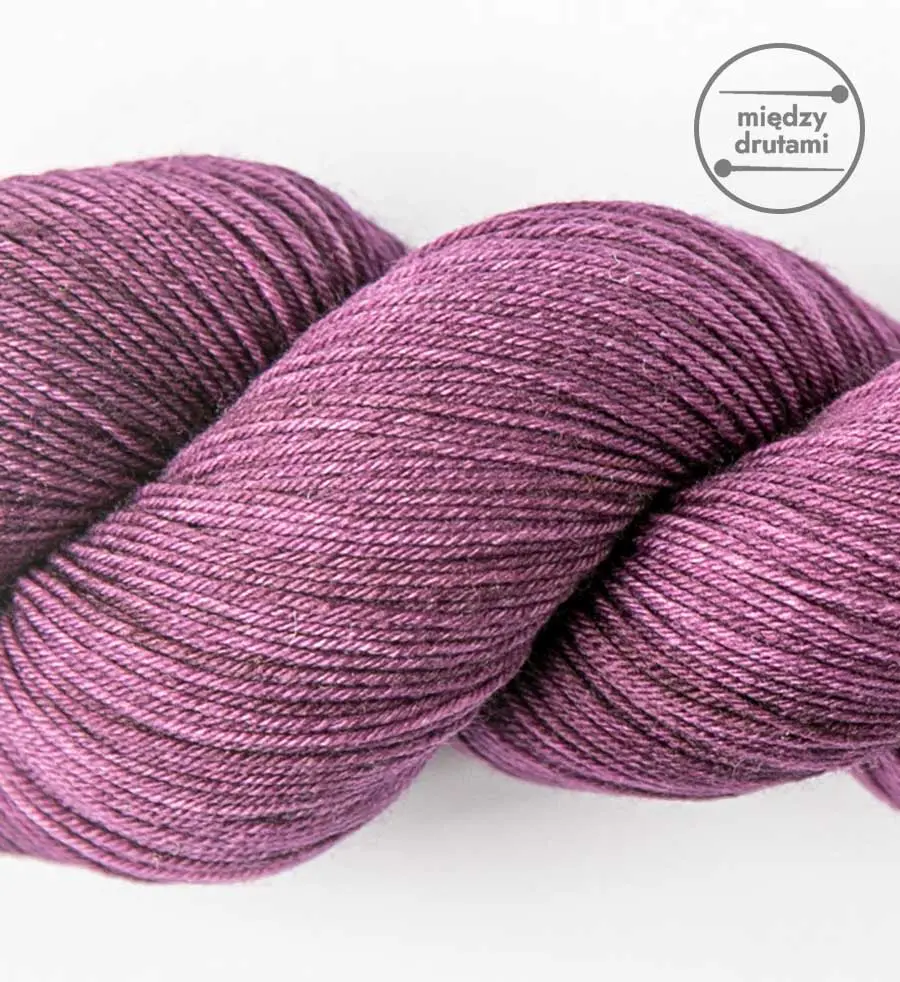 To przyjemna w odbiorze włóczka z wełny merynosów z dodatkiem nylonu w autorskim farbowaniu Byzantine Sock 100 od Woollala. Wielowymiarowy kolor oberżyny, z nutą purpury, farbowanie jednokolorowe, bez przetarć i kropkowań.