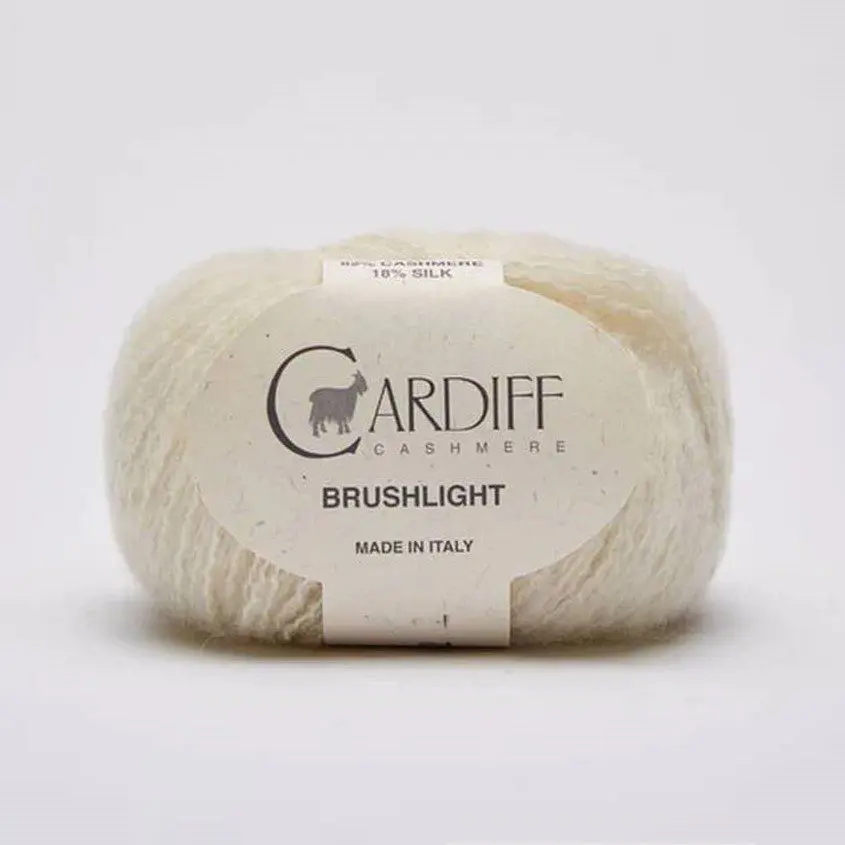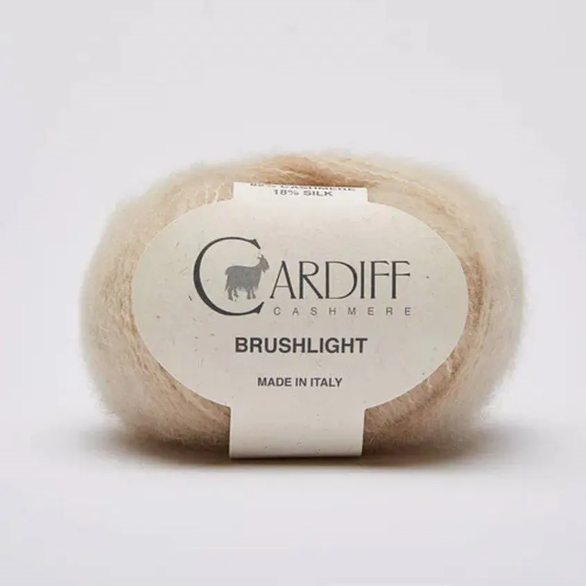 Cardiff Cashmere Brushlight to włóczka kaszmirowa z dodatkiem jedwabiu morwowego. Ta doskonała przędza jest niezwykle delikatna i miękka. W przypadku przędzy Cashmere Brushlight zastosowano specjalny proces szczotkowania, w związku z tym struktura przędzy jest niesamowicie lekka i puszysta. To idealny materiał na odzież a w szczególności na: czapki, kominy, bluzki, swetry noszone blisko ciała.