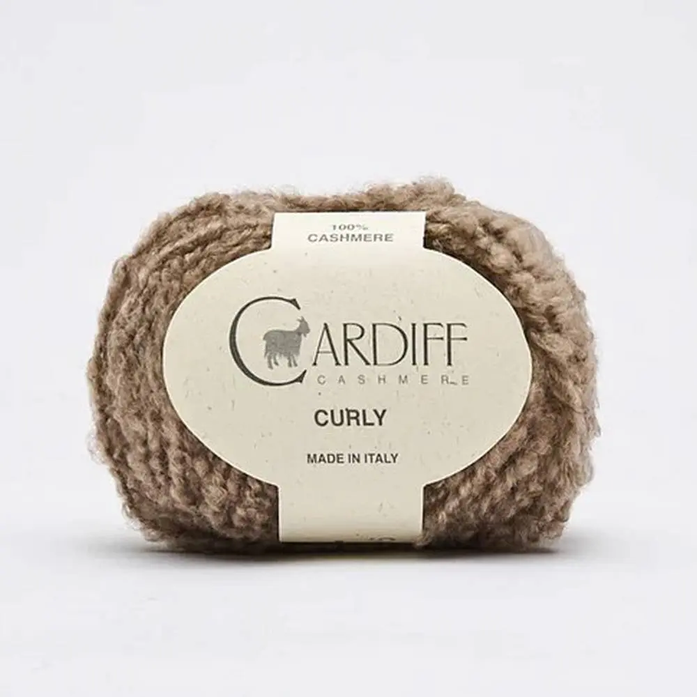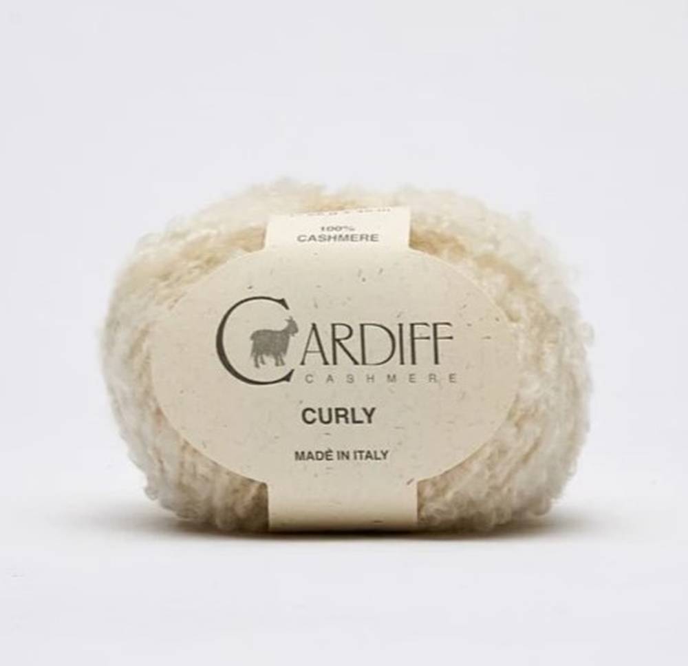 Cardiff Cashmere Curly to włóczka 100% kaszmirowa. Ta doskonała nić jest niezwykle delikatna i miękka. W przypadku Cashmere Curly zastosowano specjalną technikę przędzenia, w związku z tym struktura włóczki jest „pętelkowa”. To faktura mocno przypominająca włóczki bouclé. To idealny materiał na odzież a w szczególności na: czapki, kominy, bluzki, swetry noszone blisko ciała. Wyroby wykonane z przędzy bouclé mają bogatą, teksturowaną powierzchnię, która może przypominać futro lub wełniany materiał o nieregularnym splocie. Nazwa bouclé pochodzi od francuskiego słowa oznaczającego „pętelkę” lub „kędzierzawy”. Ta technika przędzenia jest szczególnie ceniona za teksturę i wygląd, który nadaje gotowym wyrobom charakterystyczny, trójwymiarowy efekt.