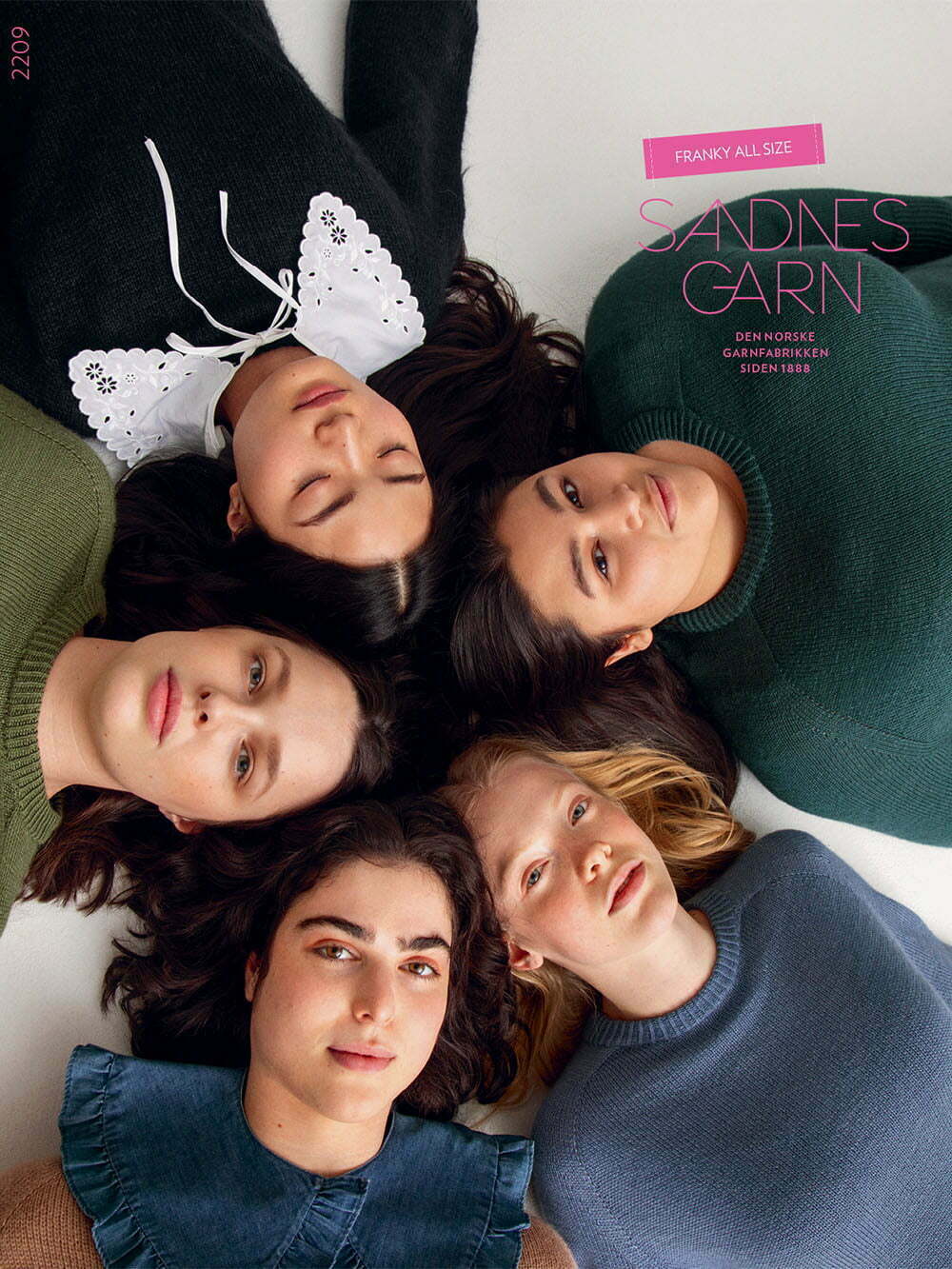 Magazyn Franky All Size 2209 w wydaniu Sandnes Garn zawiera projekt damskiego swetra Franky w wielu wersjach rozmiarowych, od 2XS do 3XL. Kliknij w link „Sandnes Garn” aby sprawdzić rozmiary i ilość włóczki potrzebnej do poszczególnego projektu.
