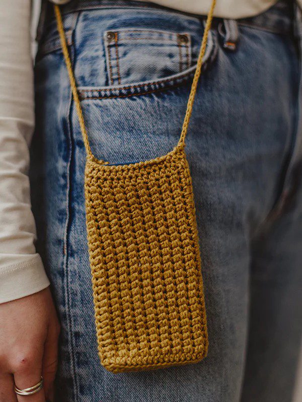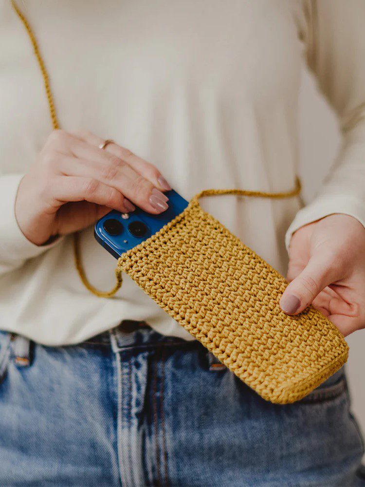 Gan Phone Bag to wzór na szydełko z włóczką, według którego wykonasz praktyczne etui na telefon w stylu boho. Torebkę wykonasz z włóczki Sole marki Pascuali.