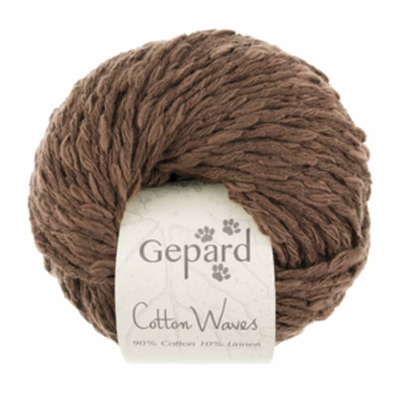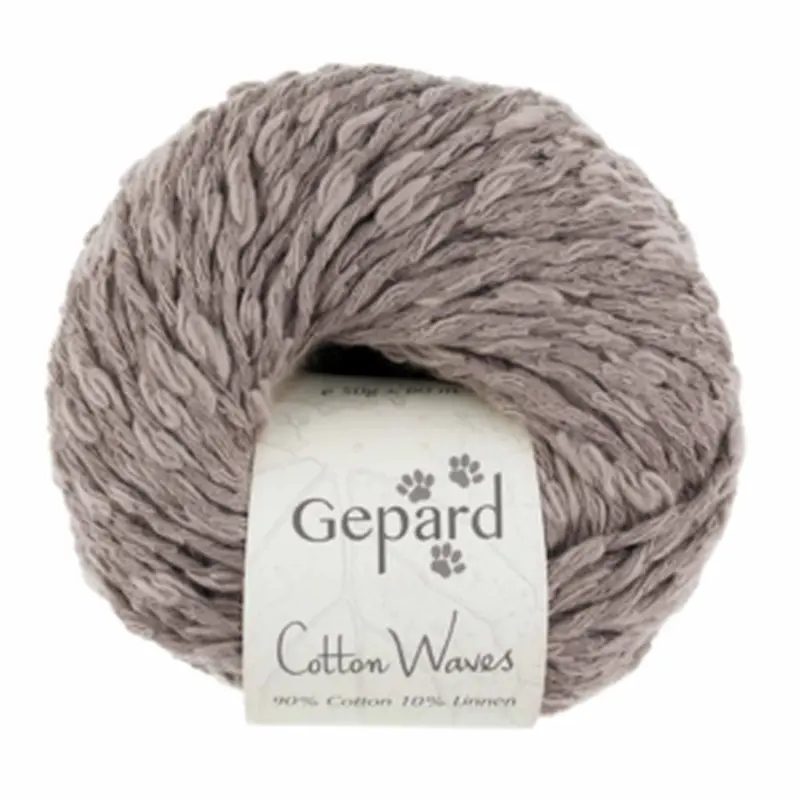 CottonWaves marki Gepard Garn – efektowna, grubsza włóczka bawełniana w stylu bouclé, idealna na letnie projekty dziewiarskie. Jej nieregularna, falista struktura przywodzi na myśl morskie fale – stąd jej nazwa. Przeznaczona na druty od 5 do 8 mm, doskonale sprawdzi się w projektach typu oversize, luźnych topach, kardiganach czy dzianinach inspirowanych stylem marynarskim. W składzie CottonWaves znajdziesz aż 90% przyjemnej w dotyku bawełny oraz 10% lnu, dzięki czemu dzianiny zyskują przewiewność, lekkość i naturalny wygląd. To włóczka, która łączy styl z komfortem noszenia.
