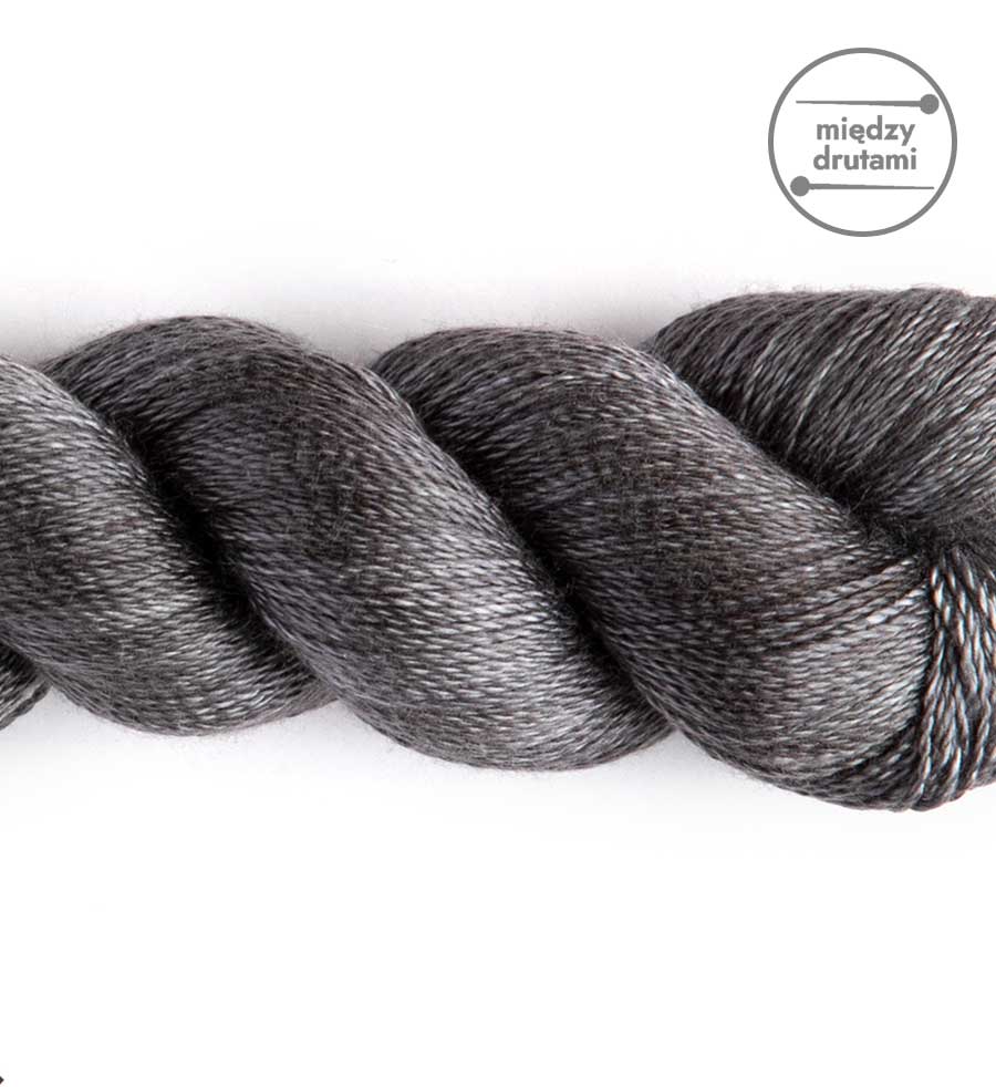 To przyjemna w odbiorze włóczka w 100% z jedwabiu morwowego w autorskim farbowaniu Graphite Pure Silk Lace 600 od Woollala. Wielowymiarowy kolor pomiędzy ciemną szarością a czernią, farbowanie jednokolorowe, bez przetarć i kropkowań.