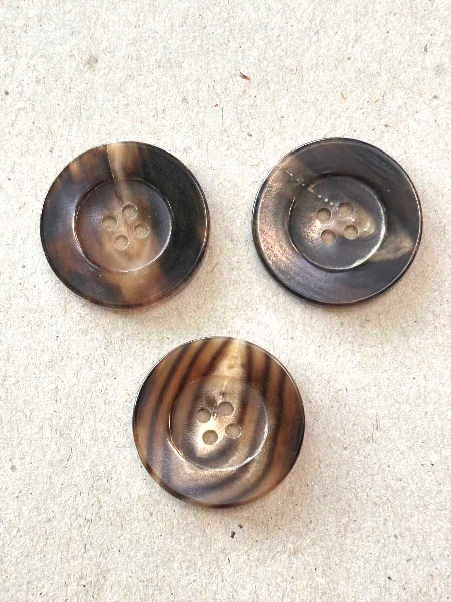 Guziki rogowe z rogu bawolego w odcieniach ciemnego brązu z jasnymi przetarciami