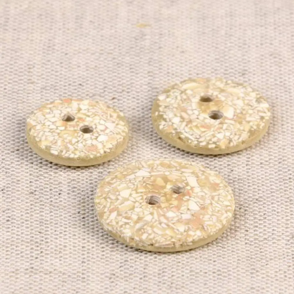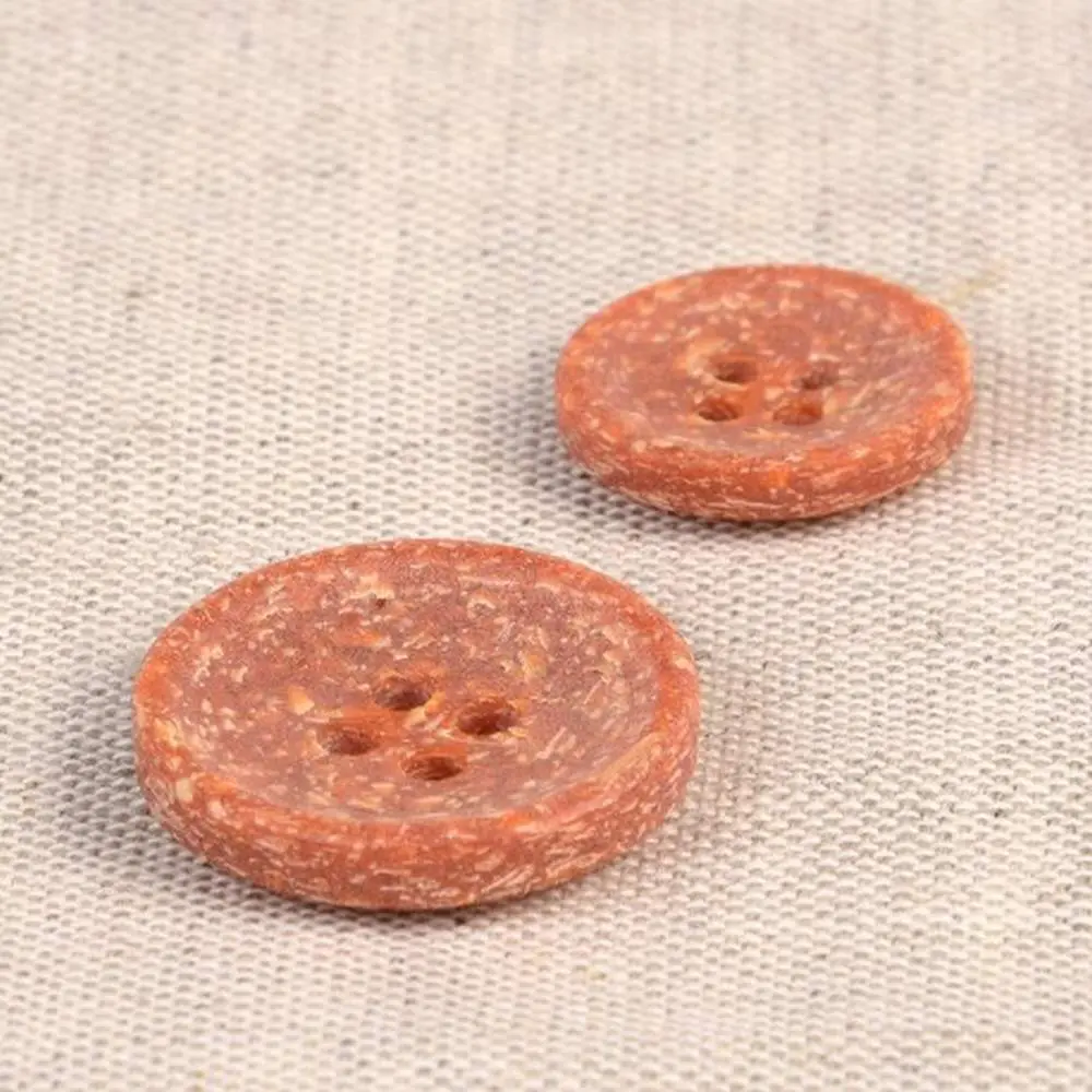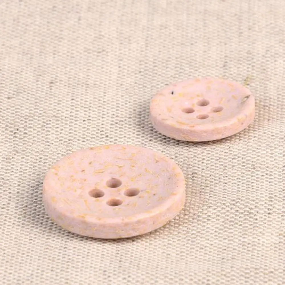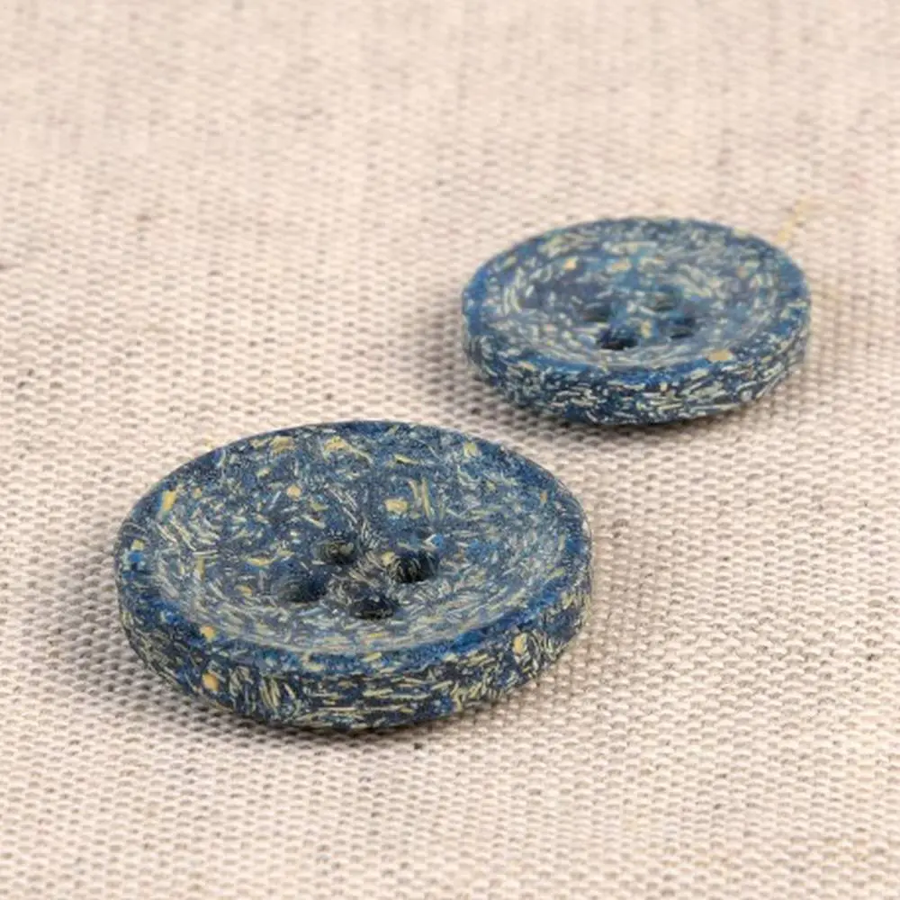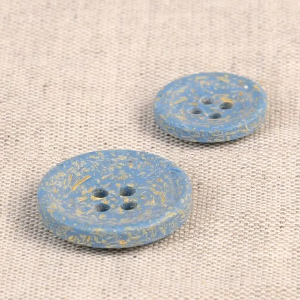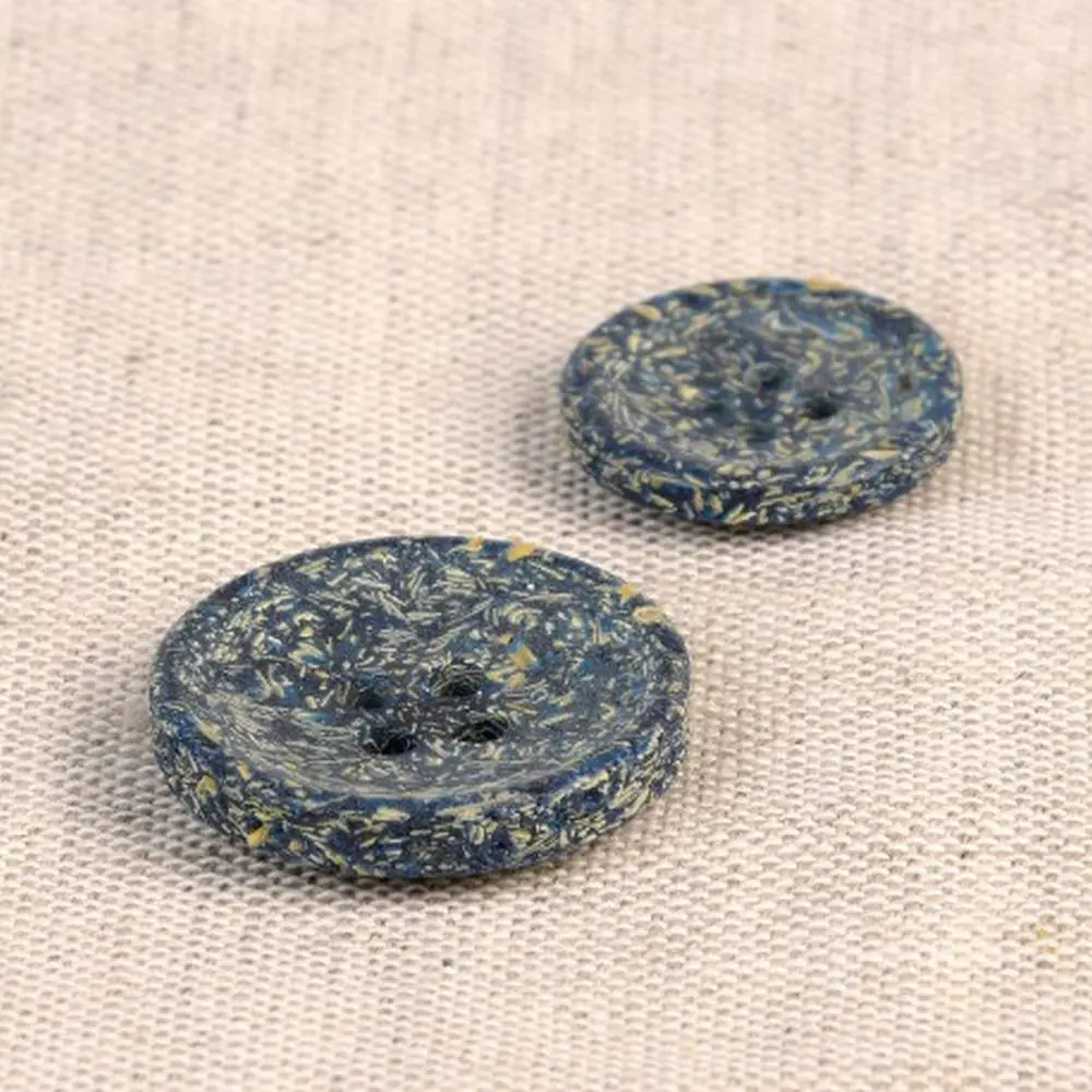 Guziki produkuje się z łuski ryżowej, która jest naturalnym odpadem po zbiorze ryżu. Następnie łuski ryżowe łączy się z poliestrem. Całość wygląda naprawdę niesamowicie! Guziki mają ciekawy, lekko ziarnisty wygląd, widoczne są drobinki ryżu. Dodatkowo pod palcami można wyczuć delikatną fakturę ziaren. Jaśniejsze ziarna tworzą na powierzchni guzika delikatny melanż kolorystyczny.