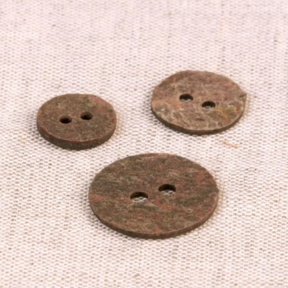 Guziki produkuje się z kamienia i włókna szklanego. To doskonałe połączenie estetyki i funkcjonalności. Produkcja tych guzików zaczyna się od starannego wyboru kamienia. Kamień jest cięty na odpowiednie kawałki, a następnie łączony z włóknem szklanym. Włókno szklane, zmieszane z żywicą, tworzy materiał kompozytowy o wysokiej odporności na uszkodzenia i działanie wysokich temperatur. Proces formowania guzików polega na wlewaniu mieszanki kamienia i włókna szklanego do form, które następnie są utwardzane. Guziki są precyzyjnie wykańczane, aby uzyskać odpowiedni efekt. W przypadku tego modelu to delikatna tekstura i matowe wykończenie. Na końcu wierci się otwory.