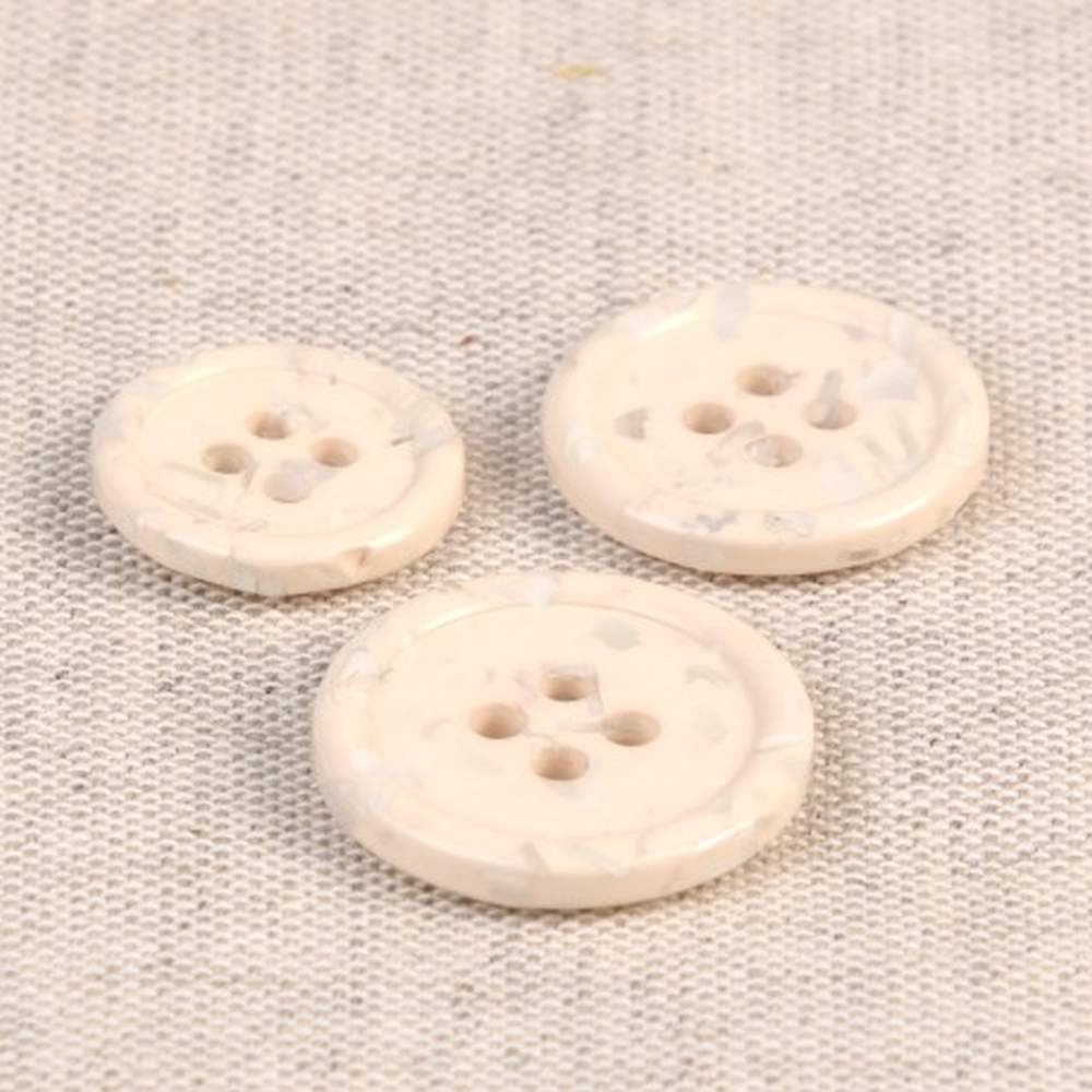 Odkryj unikalne guziki wykonane z recyklingowanych butelek plastikowych w różnych kolorach. Te guziki z recyklingu o średnicy 18 mm są dostępne z 4 dziurkami. Powierzchnia guzików jest gładka, z rantem. Widać na nich drobinki w delikatnie kontrastowych kolorach. Idealne do projektów rękodzielniczych, zwłaszcza do kardiganów zrobionych na drutach. Wykonane we Francji, guziki te łączą w sobie elegancję z troską o środowisko. Wybierz spośród różnorodnych kolorów, aby dodać wyjątkowy akcent swoim swetrom zrobionym na drutach. Doskonałe dla miłośników rękodzieła, projektantów mody i wszystkich, którzy cenią sobie zrównoważoną modę. Wybierając nasze guziki, wspierasz ochronę środowiska, jednocześnie zyskując oryginalny i stylowy dodatek do swojej garderoby.
