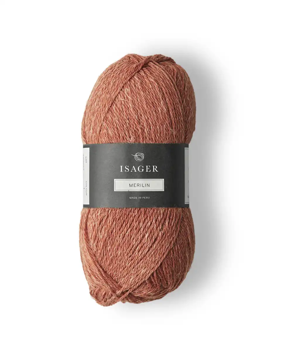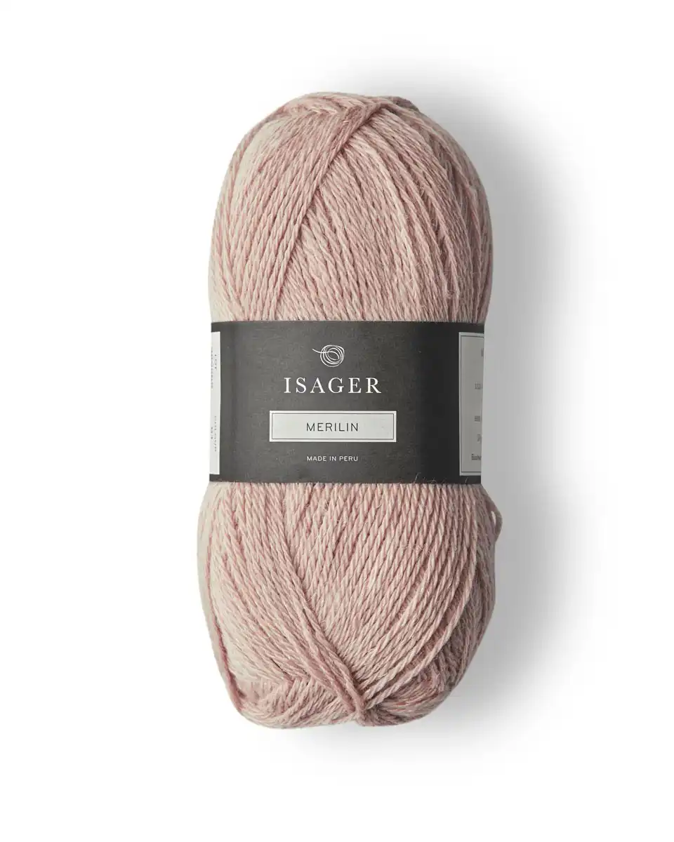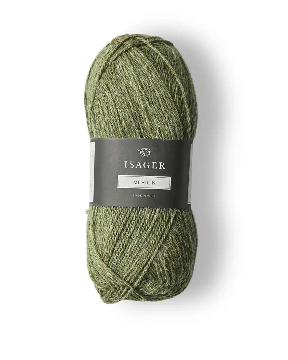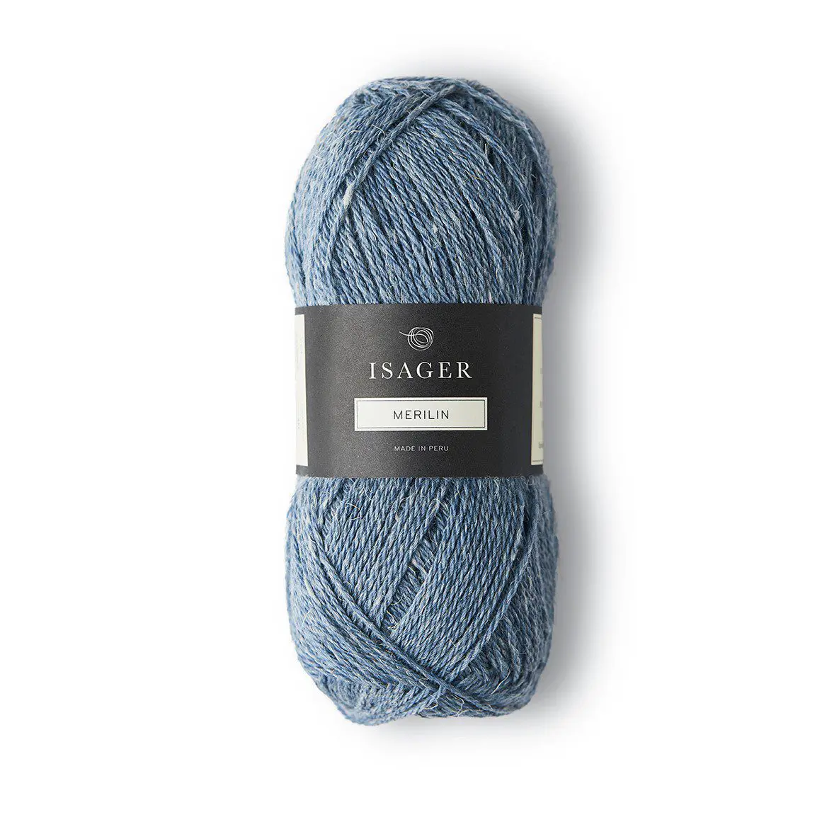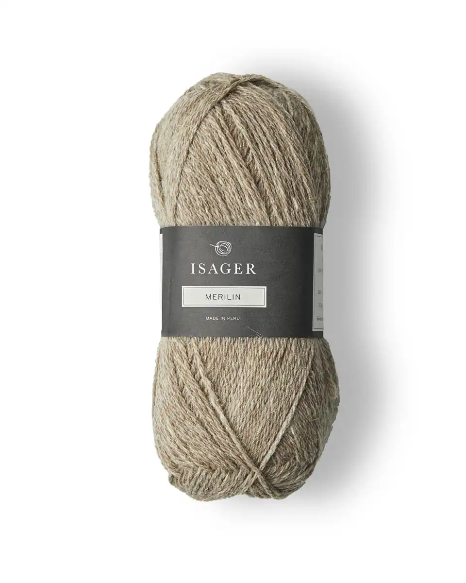 Włóczka Merilin Isager to połączenie wełny owczej i lnu. Jest to przędza trójwarstwowa, która świetni sprawdzi się we wzorach strukturalnych. W odczuciu bardzo miękka, więc jest dobrym wyborem dla osób o wrażliwej skórze. Len dodaje włóczce swoistą rustykalność, ponieważ nie barwi się w tym samym stopniu co wełna