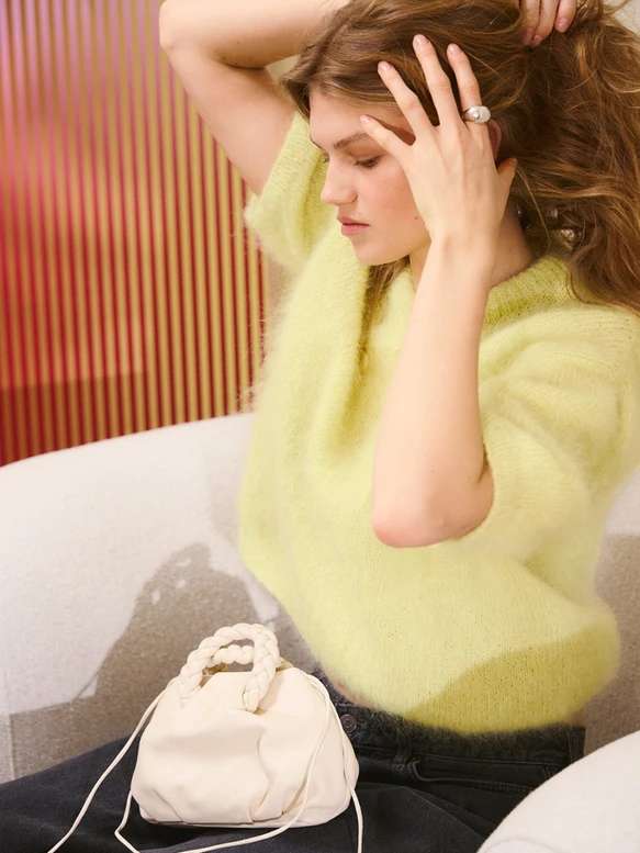 Wzór do robienia na drutach Ivy Tee 2502-06 Sandnes Garn to elegancka bluzka, którą wydziergasz z grubego moheru Ballerina Chunky marki Sandnes Garn.