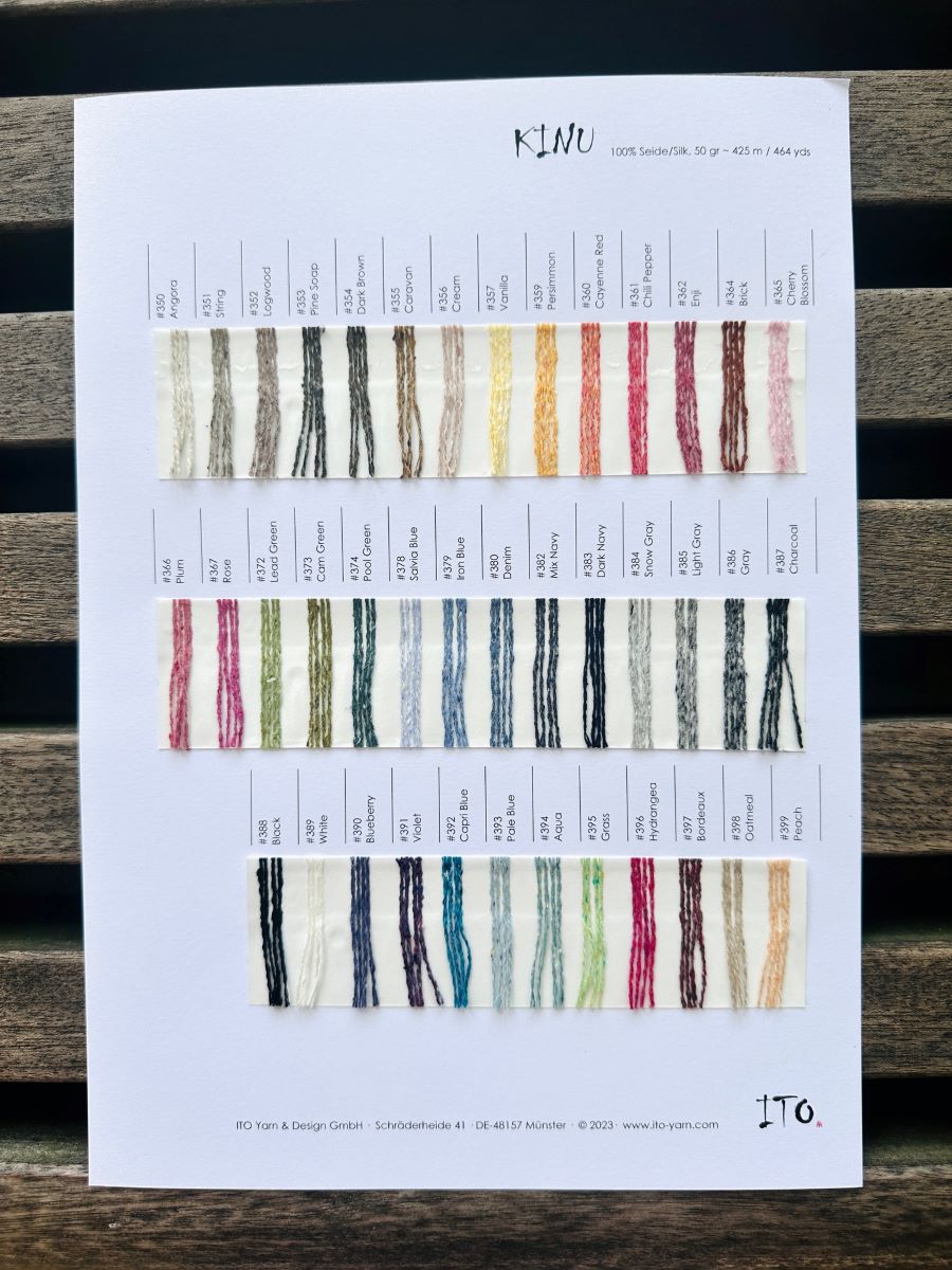 Karta-wzornik kolorów włóczki Kinu marki ITO.