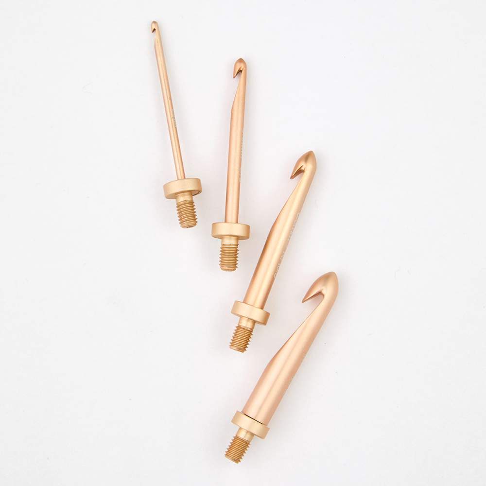 Szydełka wymienne Oasis to najnowsza propozycja popularnej marki KnitPro. Hak wykonany został z metalu w kolorze różowego złota. Wymiana szydełek jest niezwykle prosta. Wystarczy wkręcić wybrany rozmiar do jednej z dwóch drewnianych rączek. Ergonomiczny kształt drewnianego uchwytuto niezwykły komfort użytkowania, a precyzyjne dopasowanie umożliwia płyną pracę. Wymiana końcówek między rozmiarami od 2 mm do 10 mm jest szybka i łatwa, co sprawia, że Oasis idealnie sprawdzą się w wielu projektach szydełkowych.