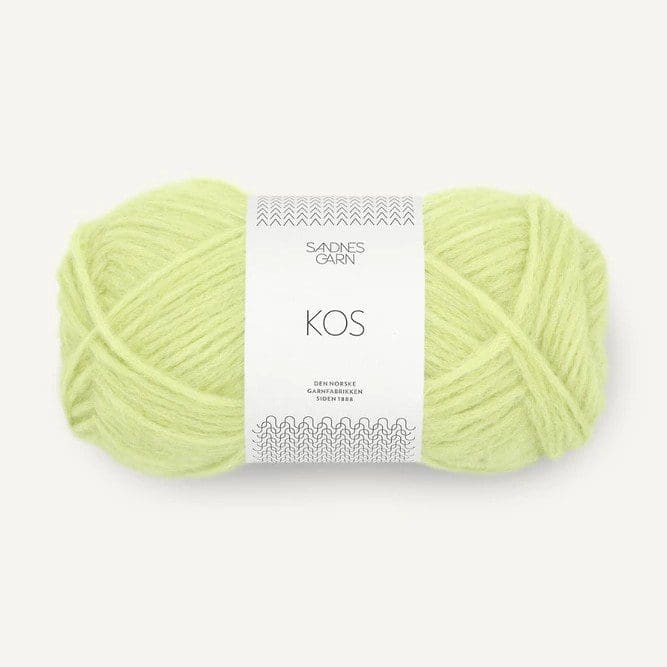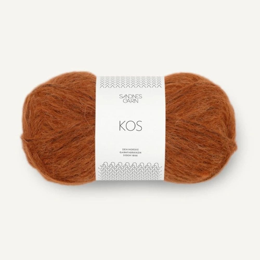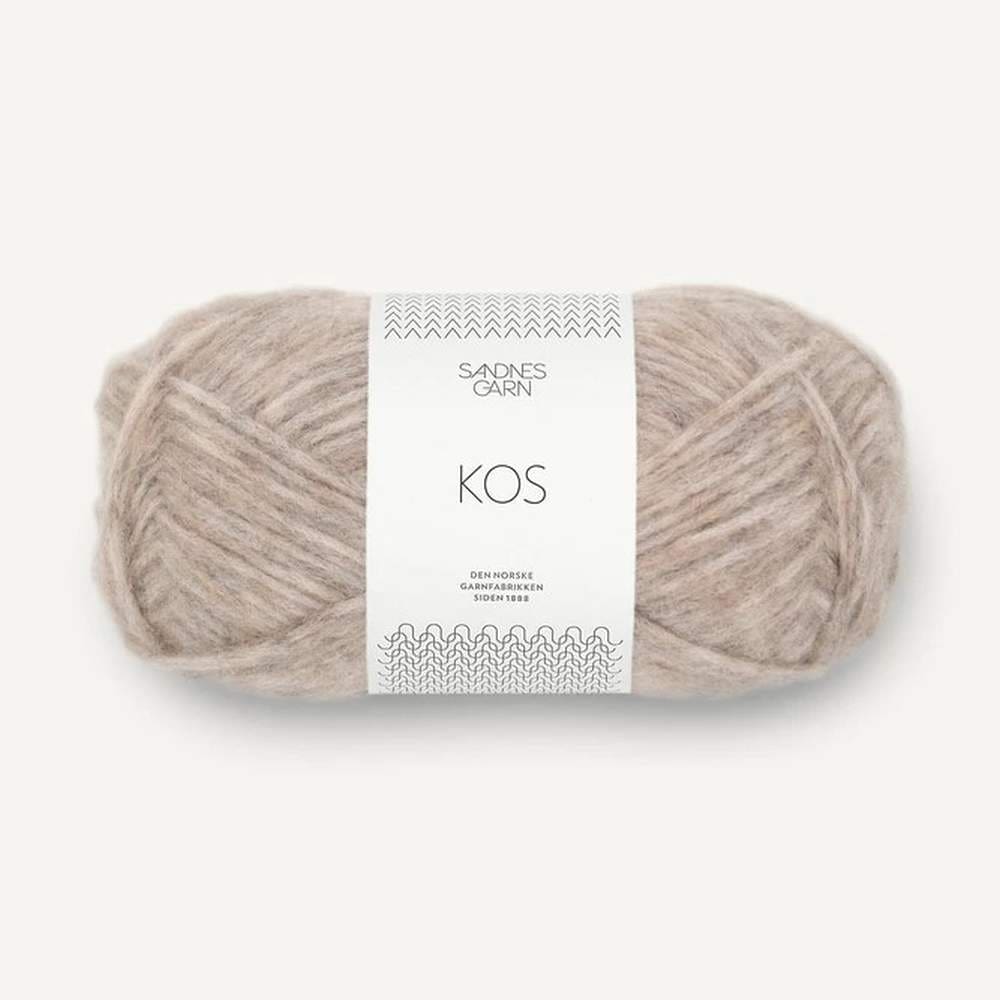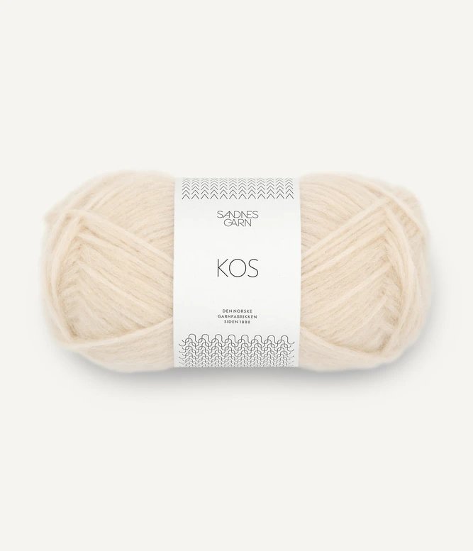 Włóczka Kos Sandnes Garn to połączone włókno alpaki i wełny wdmuchane w osnowę nylonową o strukturze łańcuszka. Rezultatem jest miękka, niezwykle lekka i przewiewna przędza o rozmytej fakturze. Kolory są lekko przymglone, a cześć z nich posiada melanżowe wykończenie.