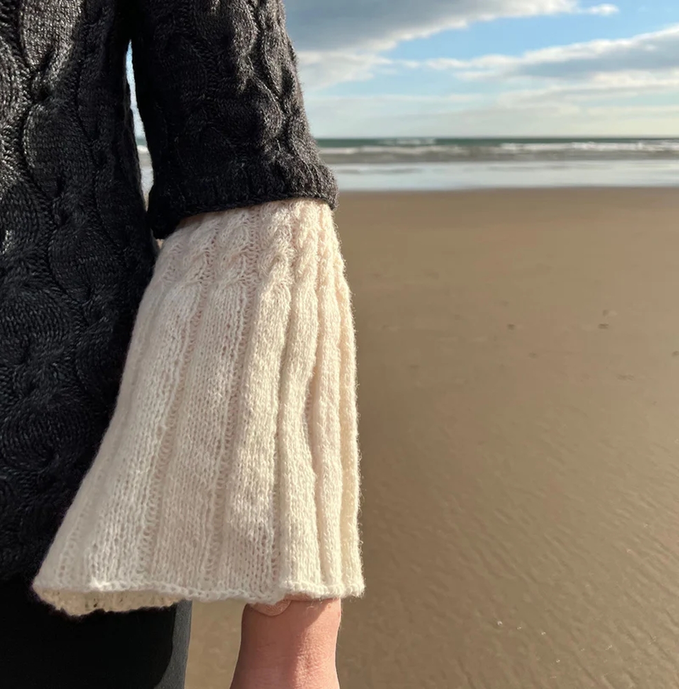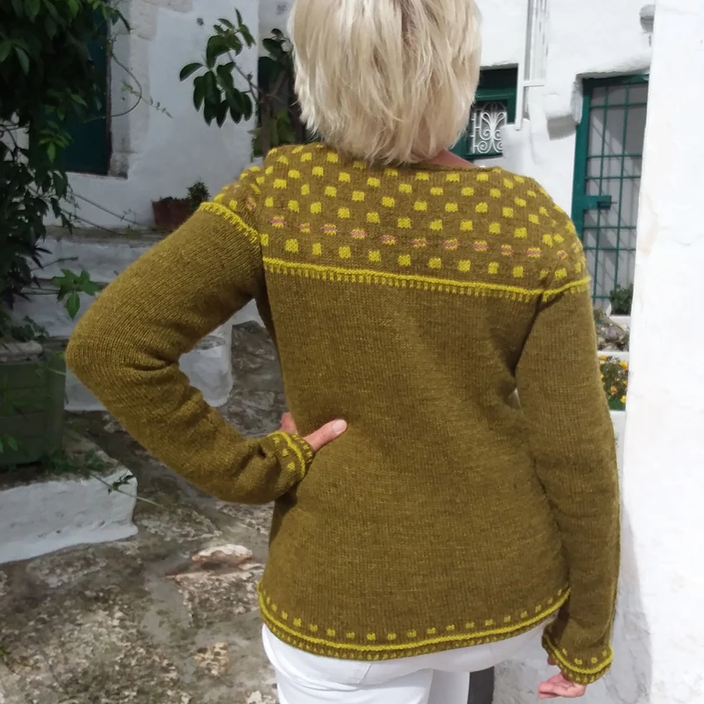 - główki rękawów dziergane razem z karczkiem – efekt wszywanych rękawów