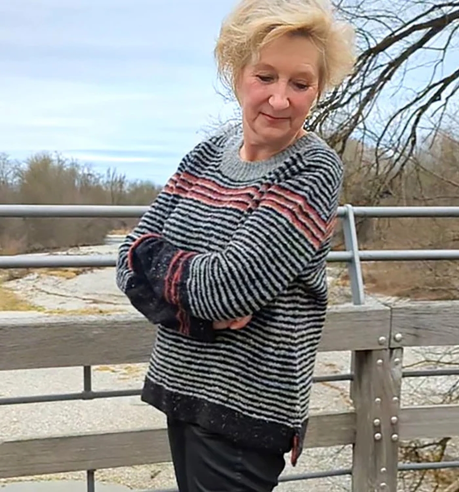 - dzianina jest dopasowana, dziergana od góry do dołu