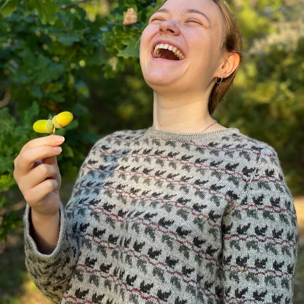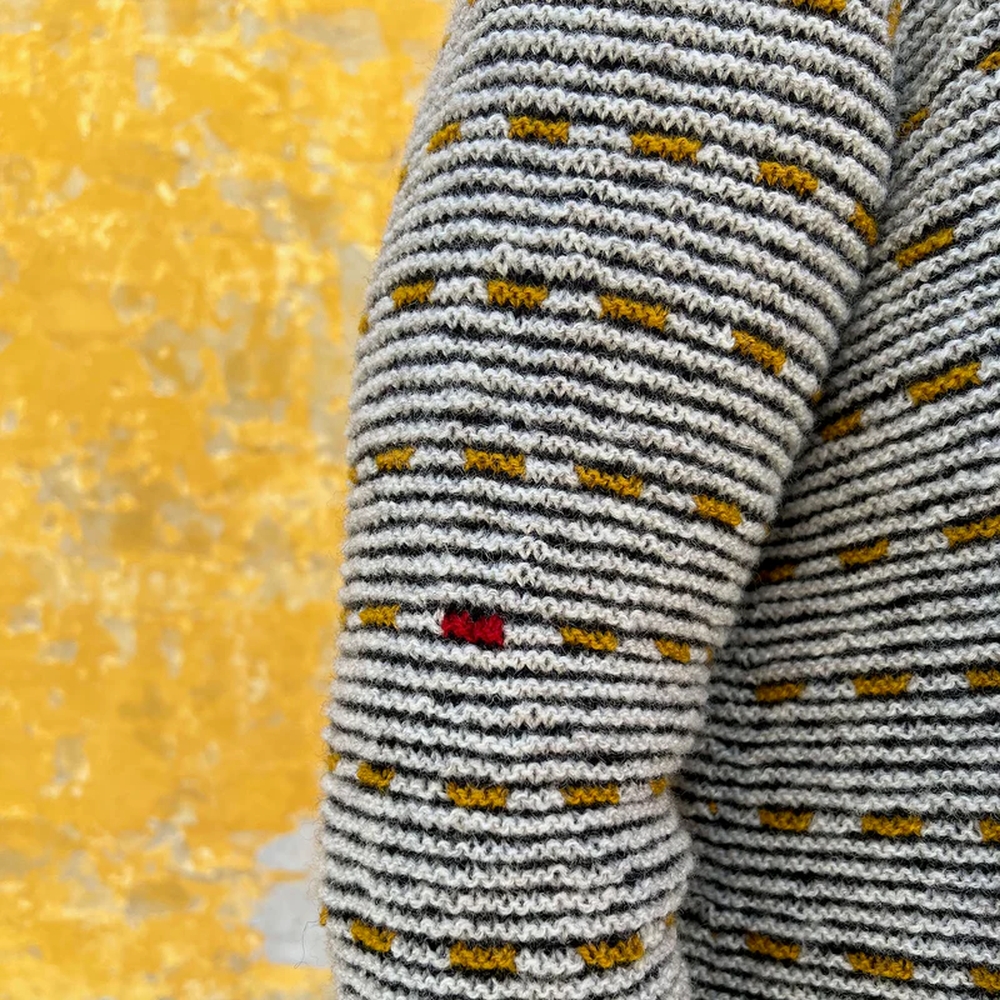 Sweter w technice Ziggurat dziergany jest bezszwowo, od góry do dołu, bez przerywania nitki. W trakcie pracy kształtuje się główki rękawów oraz dekolt. Plisy na guziki, kieszenie – wszystkie detale powstają od razu, a nie są doszywane później. Dzięki metodzie Ziggurat uzyskujesz elegancką, dopasowaną do sylwetki dzianinę – karczek idealnie układający się na ramionach i brak workowatych pach. Dzierga się w sposób „zygzakowaty”, kształtując kolejno oba ramiona, zanim rozpocznie się zwykłe dzierganie w okrążeniach. Nitkę odcina się tylko wtedy, gdy jest to absolutnie konieczne. Dzięki temu na koniec do schowania zostaje bardzo niewiele nitek. W praktyce, gdyby dziergać sweter z jednego ogromnego motka wystarczającego na całość, na końcu do schowania byłoby dokładnie 6 nitek.