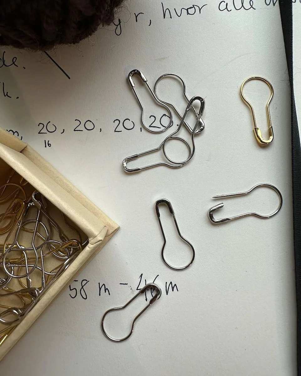 Dzięki zaokrągleniu na końcu każdej agrafki można używać ich na grubszych drutach.