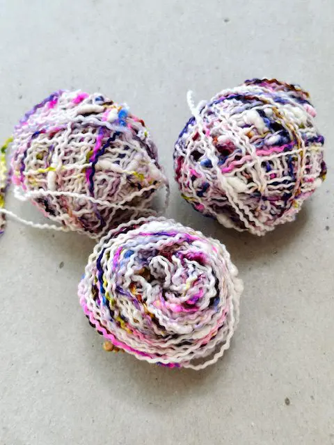 Mini motki Fancy Wool wykorzystasz przy fantazyjnych wykończeniach dzianiny, tak jak w swetrze Kimono od Eweliny Wójcik @splot.ka (kliknij TUTAJ by zobaczyć wzór). Włóczka świetnie sprawdzi się także w hafcie oraz punch needle.