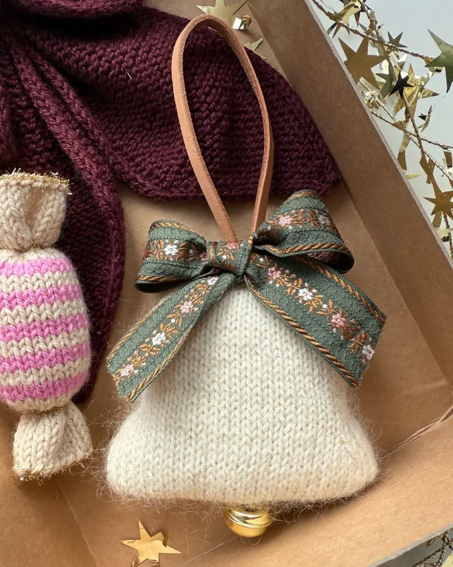 Skórzany pasek do kokardy December Bow lub dzwoneczka Christmas Bell (darmowy wzór PetiteKnit kliknij TUTAJ by zobaczyć). Z czasem skóra pokryje się naturalną patyną.