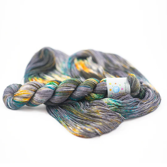 Piękno i niepowtarzalność to główne atuty włóczek farbowanych ręcznie. W Peacock Orange Comfy Merino grafitowo – szare tło urozmaicone przetarciami i kropkowaniem w nutach żółci, pomarańczy i zieleni.