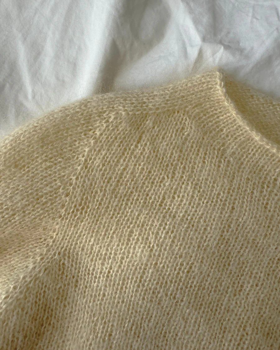 PetiteKnit Ivy Blouse to oryginalne wydanie PetiteKnit, na podstawie którego wykonać można sweter „mgiełka” na drutach. Sugerowana przez projektantkę włóczka to Deluxe Silk Mohair marki Krea. Ale z powodzeniem można wydziergać tę bluzkę z takich moherów jak: Mohair Bliss Pascuali, Tynn Silk Mohair Sandnes Garn, Sensai ITO, a także Silk Mohair marki Isager. Pamiętaj o tym, aby zawsze wykonać własną próbkę przed rozpoczęciem dziergania.
