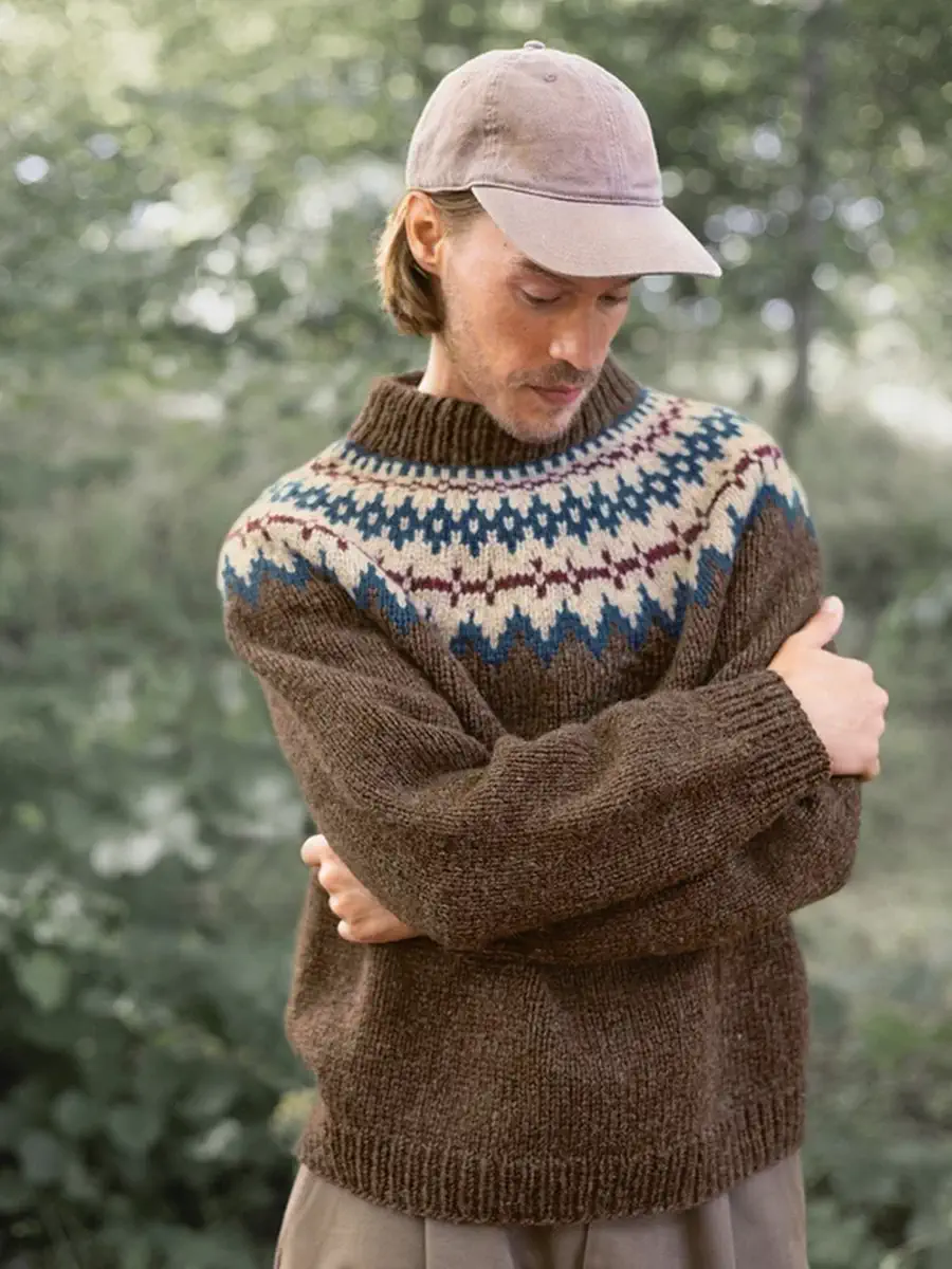 Wzór do robienia na drutach Polar-light Sweater Man 2410-06 Sandnes Garn to żakardowy sweter w stylu norweskim. Wykonasz go na drutach z włóczki Fritidsgarn marki Sandnes Garn.
