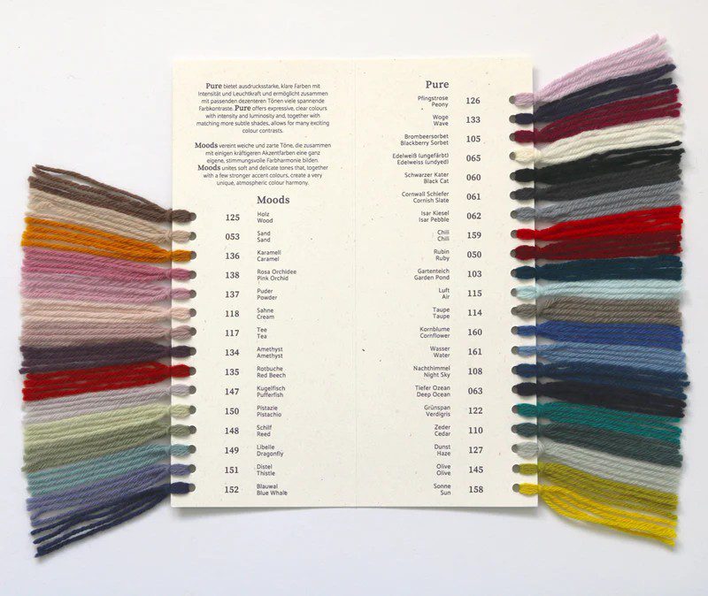 - Wzornik zawiera także podział ze względu na odcień farbowania włóczki: pure, melange oraz moods
