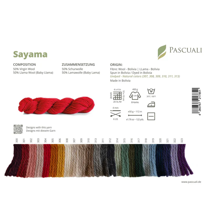 Karta-wzornik kolorów włóczki Sayama marki Pascuali.