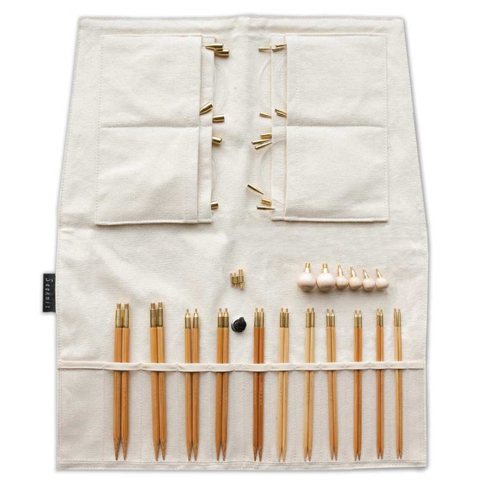 Zestaw wymiennych drutów bambusowych SeeKnit Koshitsu Comfort Set 2 zawiera 10 par drutów o długości 12,5 cm. Tak szeroki wachlarz rozmiarów daje pewność dostosowania do każdego projektu.