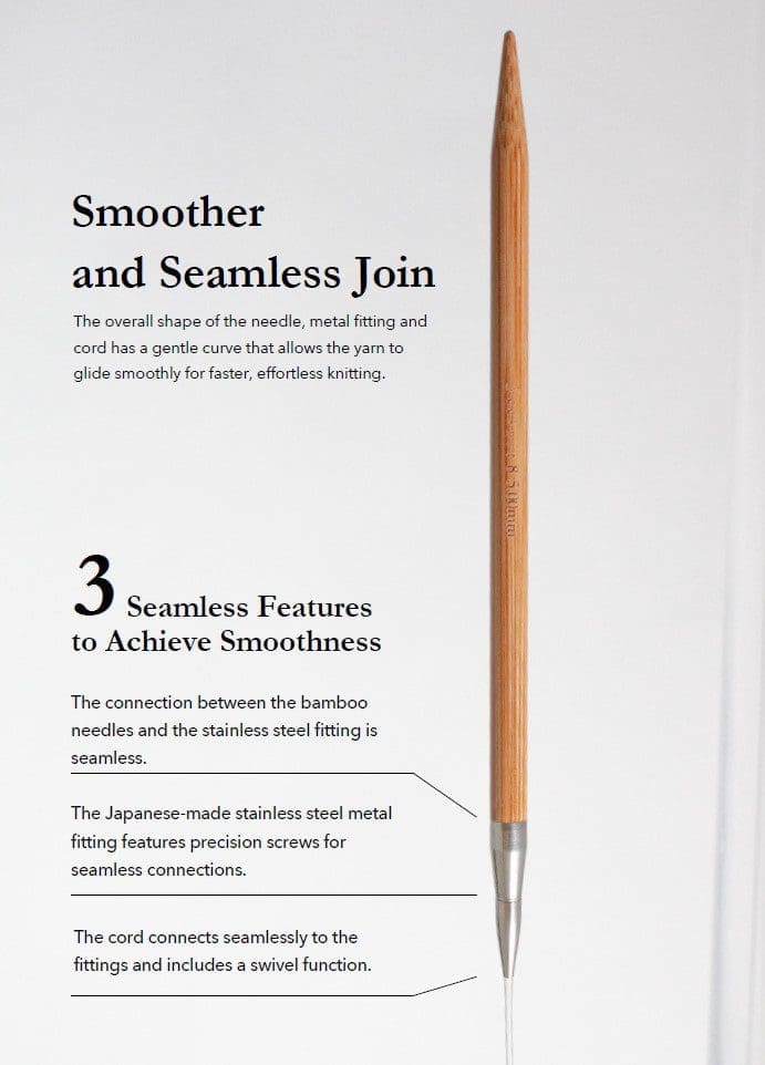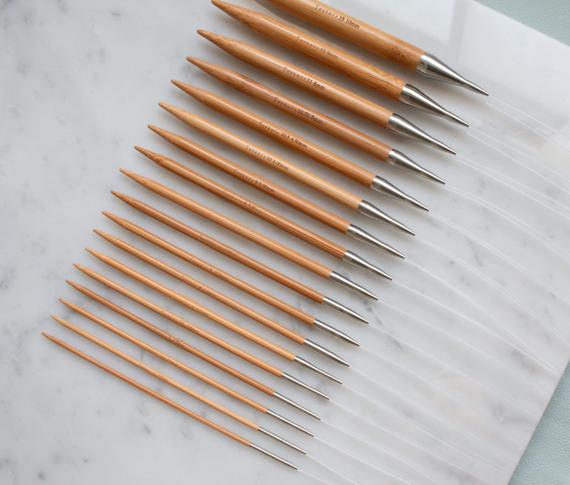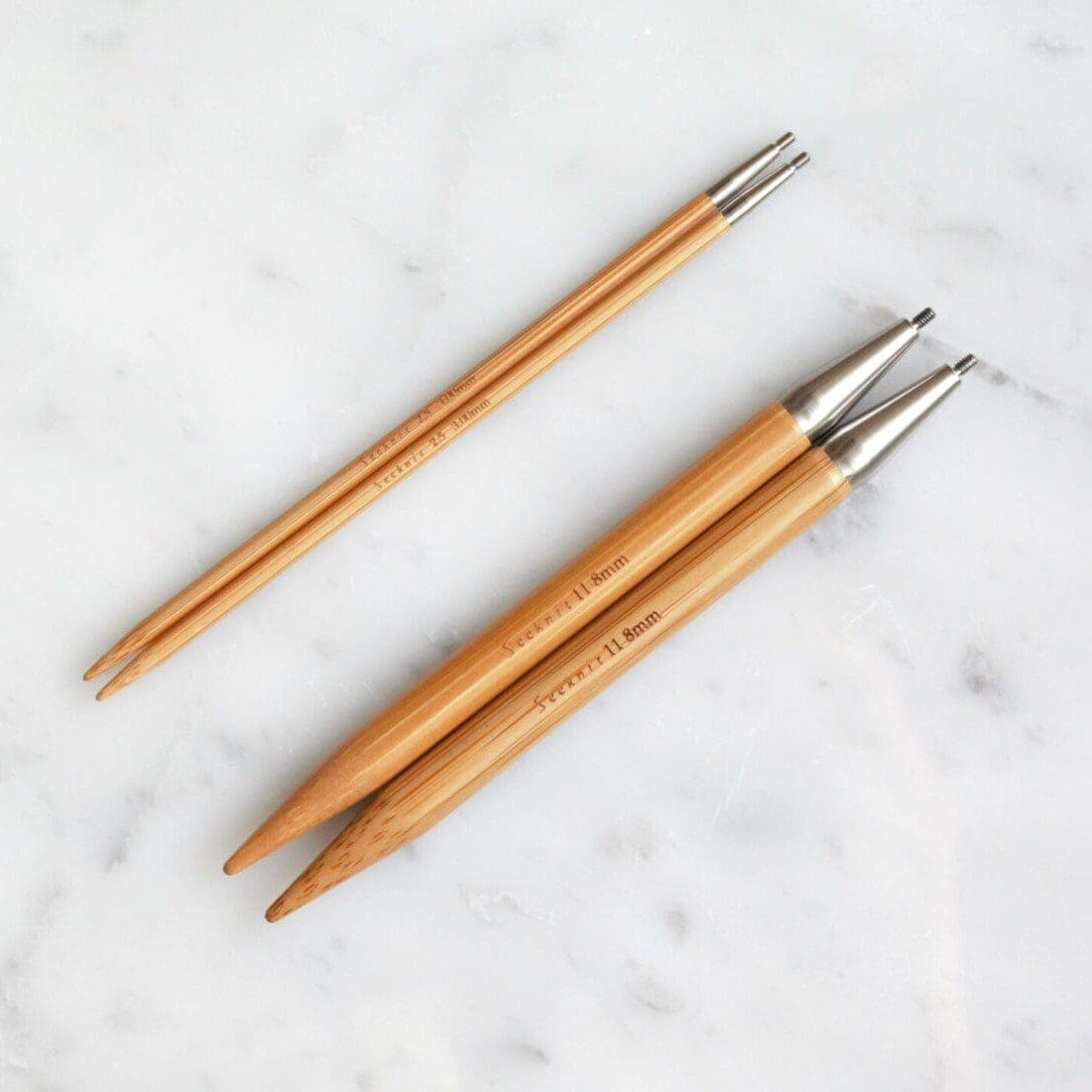 Zestaw wymiennych drutów bambusowych SeeKnit Koshitsu Curve zawiera 8 par drutów o długości 12,5 cm. Tak szeroki wachlarz rozmiarów daje pewność dostosowania do każdego projektu.