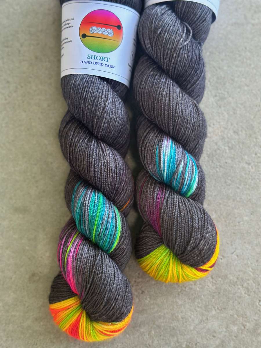 Krótki gradient to technika farbowania włóczki, w której kolory zmieniają się szybko i płynnie na krótkich odcinkach nitki. Efekt ten jest bardzo popularny w społeczności dziewiarskiej, ponieważ pozwala na tworzenie unikalnych i żywych wzorów w gotowych dzianinach. Dlatego głównym atutem włóczek farbowanych ręcznie jest ich piękno i niepowtarzalność.