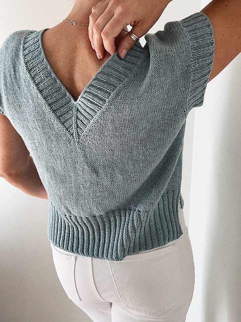 Suri Shirt V-Neck to wzór na druty z włóczką, według którego wykonasz t-shirt z dekoltem w ksztłacie litery V. Suri Shirt V-Neck wydziergasz z włóczki Puno lub Puno Winikunka marki Pascuali.