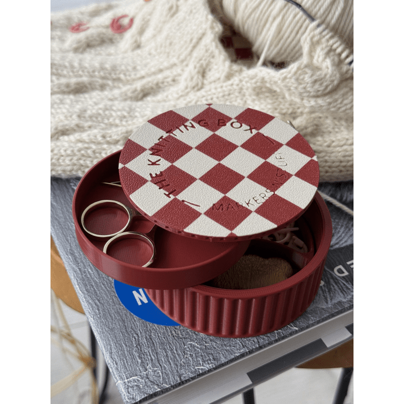 Szach-mat Mini Knitting Stuff Organizer to pudełko na akcesoria dziewiarskie, które stworzono z myślą o rękodzielnikach, którzy cenią sobie porządek, funkcjonalność i estetykę. To pudełko bez separatorów – możesz dostosować jego wnętrze do własnych potrzeb, wybierając odpowiednie przegródki osobno. Odkręcane wieczko ułatwia transport i zabezpiecza przed przypadkowym otwarciem, nawet w torebce czy plecaku. Szach-mat Mini Został wykonany w technologii druku 3D, z biodegradowalnych materiałów pochodzących z odnawialnych źródeł. Pomieścisz w nim wszystkie niezbędne drobiazgi: nożyczki, znaczniki, guziki, igły, żyłki i zakrętki magnetyczne.
