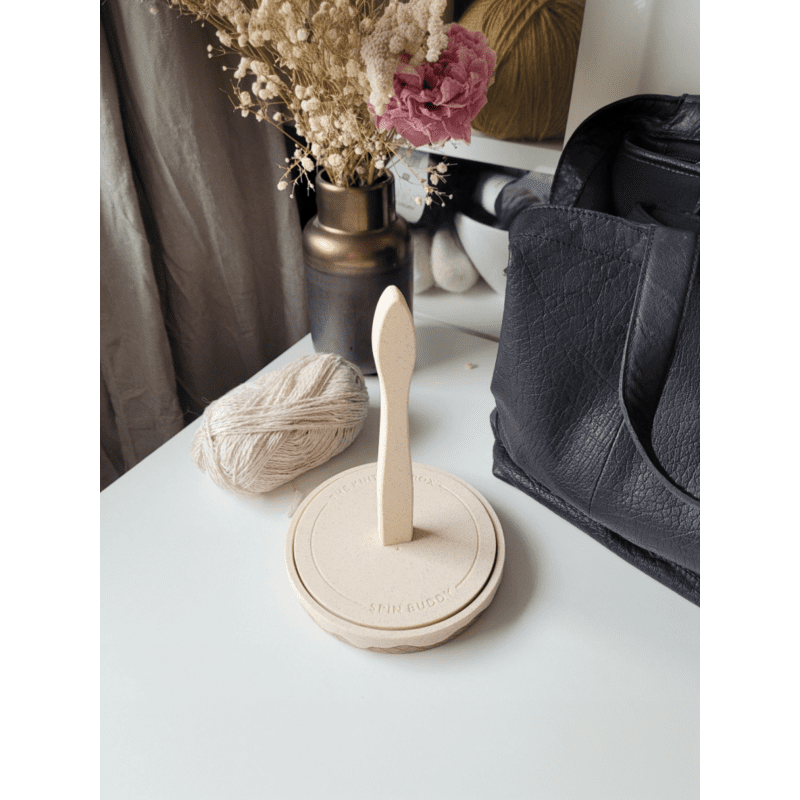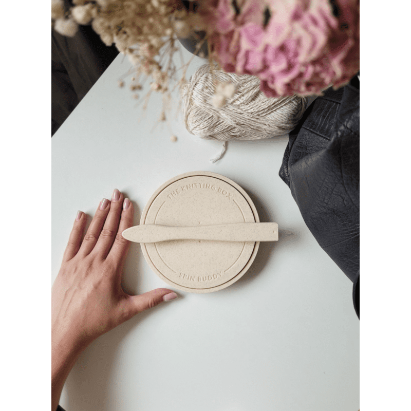 WAŻNE: Oferta dotyczy wyłącznie dyspensera na włóczkę Spin Buddy. Pozostałe przedmioty widoczne na zdjęciach – włóczki, druty i akcesoria – nie są częścią zestawu i służą wyłącznie celom prezentacyjnym.