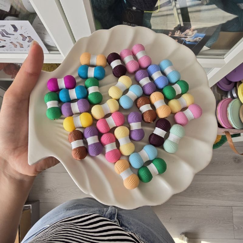 WAŻNE: Oferta dotyczy wyłącznie 1 szt. zakrętka do żyłek kłębek włóczki (zakrętka rozdziela się na dwie części, wiec 1 szt. zabezpieczy dwa końce żyłki). Pozostałe przedmioty widoczne na zdjęciach – separatory, włóczki, druty i akcesoria – nie są częścią zestawu i służą wyłącznie celom prezentacyjnym. Dodatkowo to produkt przeznaczony wyłącznie dla osób dorosłych. Przechowywać poza zasięgiem dzieci – zawiera małe elementy.