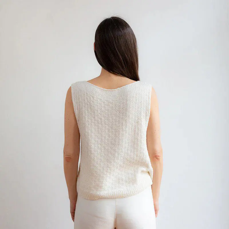 Dandelion Whiff to wzór na druty z włóczką, według którego wykonasz niezwykle lekką dzianinę o dopasowanym kroju z delikatnym, kobiecym wzorem. Top wydziergasz z wyjątkowej bawełny marki Pascuali: Suave.