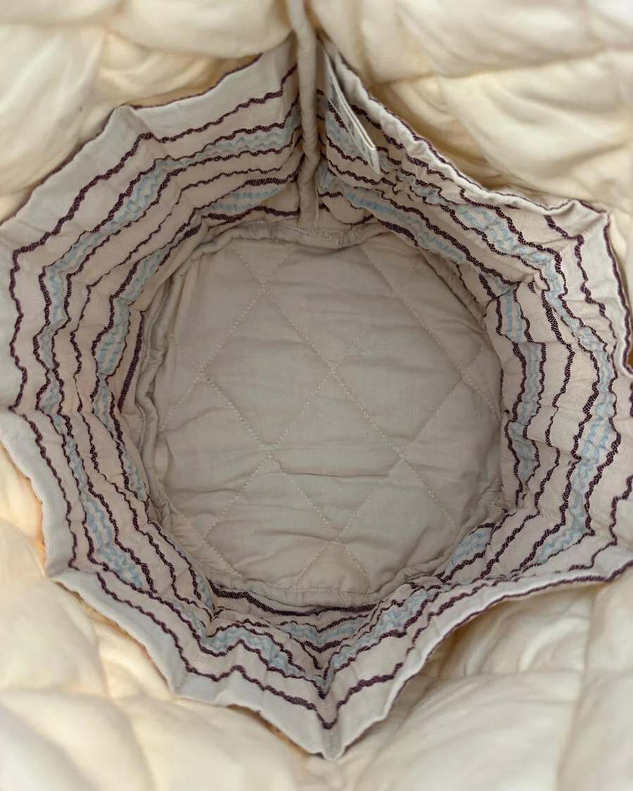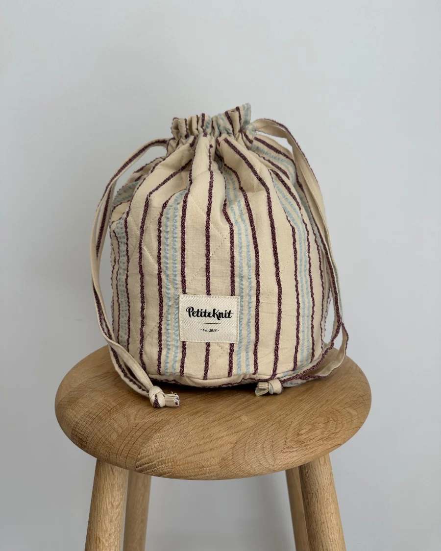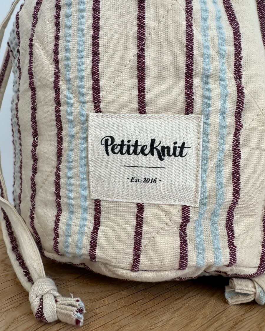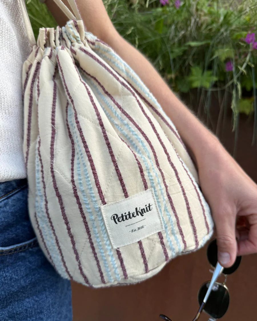 Torba pikowana na projekty dziewiarskie PetiteKnit z limitowanej serii Seersucker Twin z pikowanej bawełny na Twoje projekty, notatki i wyposażenie. Torba na projekty ma wewnętrzne kieszenie, dzięki czemu łatwo jest uporządkować włóczkę, igły, nożyczki, znaczniki oczek itp.