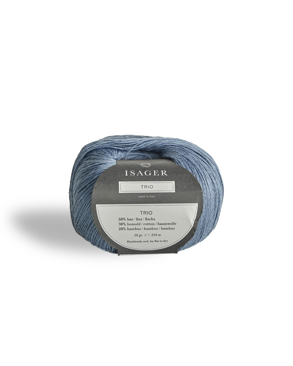 Trio 1 Isager jest cienką włóczką skomponowaną z lnu, bawełny i lyocellu. Może być przerabiana pojedynczą nitką, podwójną lub potrójną. Świetnie łączy się z innymi włóczkami jako nitka towarzysząca.