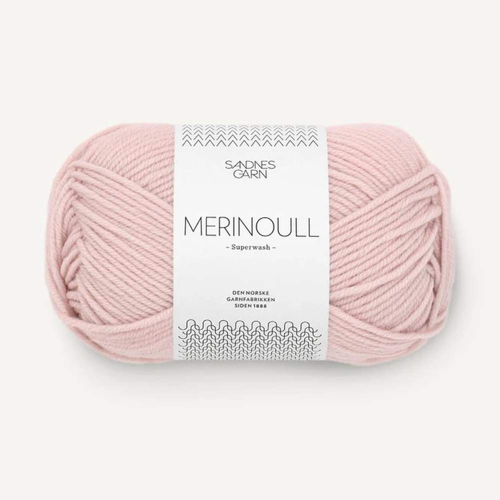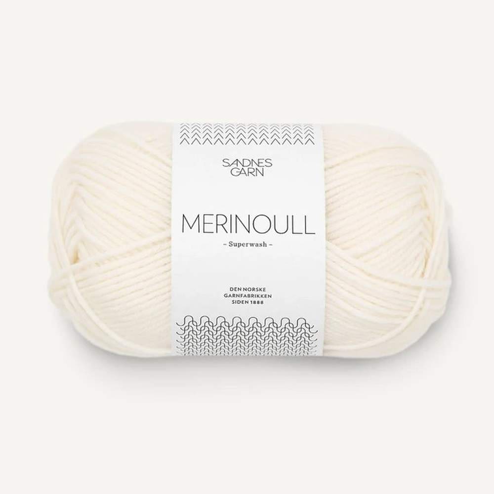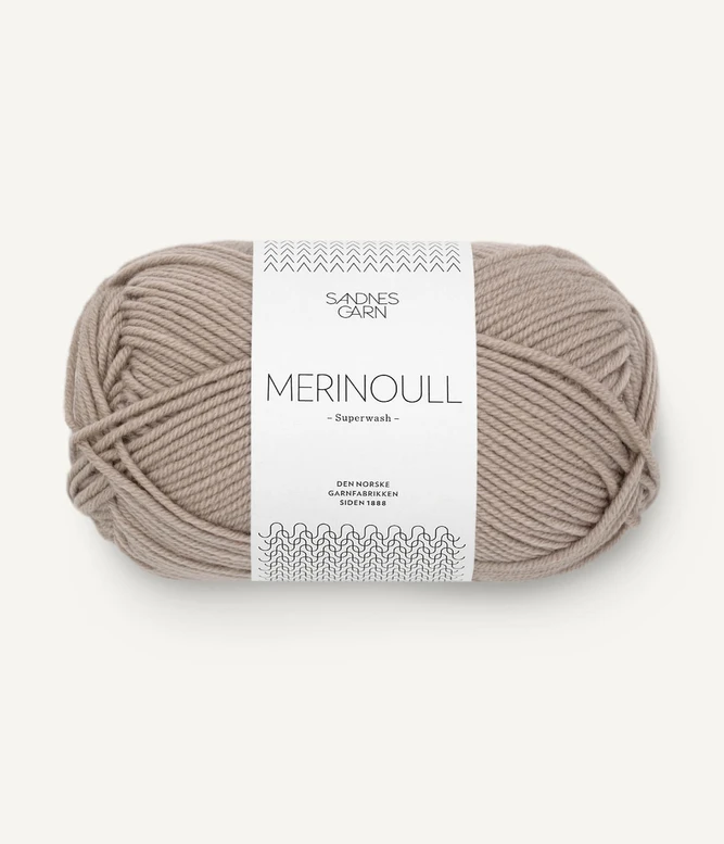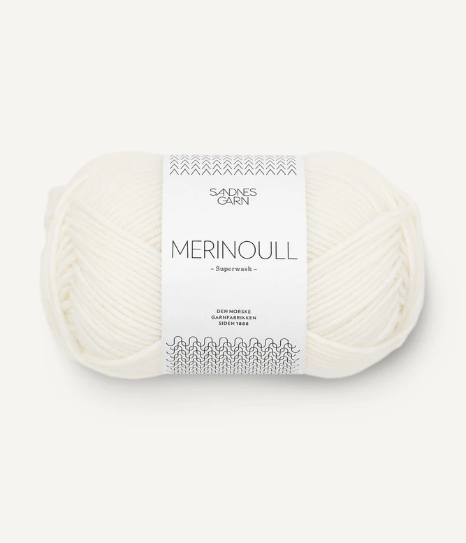 Włóczka Merinoull to 100% wełna merino w wersji superwash. To grubszy model popularnej włóczki Babyull Lanett. Wełna Merinoull Sandnes Garn pozyskana z owiec rasy merinos jest włóczką niezwykle miękką o średnim skręcie przeznaczoną na druty 3,4 – 4,0 mm. Wersja superwash pozwala na pranie wyrobów z tej wełny w pralce na właściwym programie.