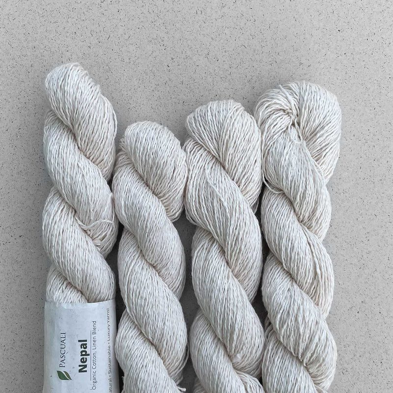 Skład przędzy Nepal Pascuali jest naprawdę niezwykły, to 60% bawełny organicznej i 40% lnu . Mieszanka sprawia, że przędza jest jednocześnie sprężysta i miękka – również dzięki specjalnemu skrętowi, który nadaje włóczce Nepal szczególnie piękną i naturalną strukturę. Po zmoczeniu włóczka mięknie dając w odbiorze lekką i przyjemną dzianinę