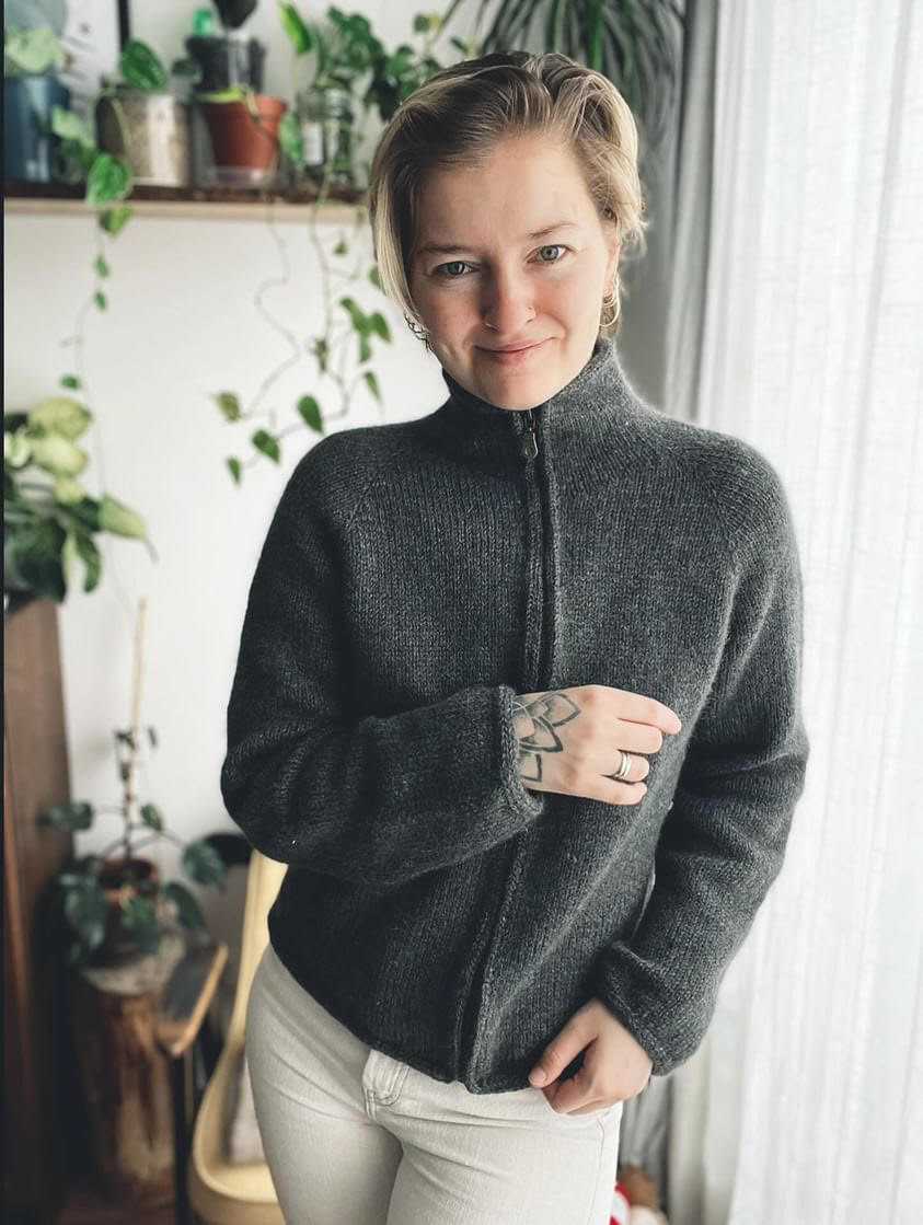 Yucca Zipper – to wzór na druty, według którego wykonasz zapinany na zamek błyskawiczny sweter. Wzór autorstwa Dagny Zielińskiej to prosty w wykonaniu rozpinany sweter, który przyciąga wzrok nie tylko kolorem i jakościową przędzą, lecz także ponadczasową formą oraz praktycznością użycia. Sweter z powodzeniem możesz nosić zamiast lekkiej kurtki lub katany – to idealne rozwiązanie na przejściową pogodę. Projekt wykonasz z włóczki Peer Gynt w połączeniu z Tynn Silk Mohair od Sandnes Garn.