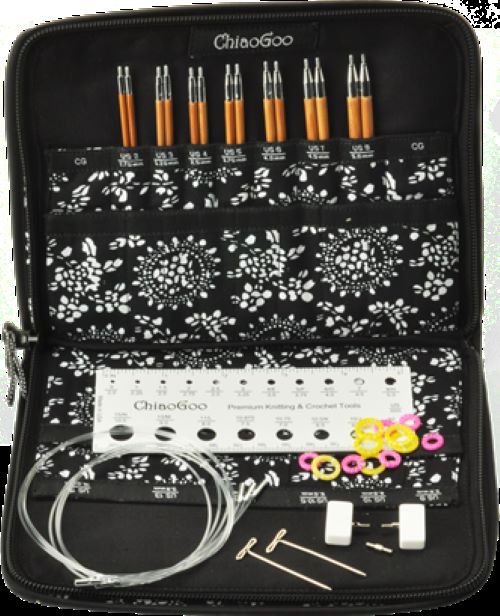 Zestaw wymiennych drutów drewnianych ChiaoGoo Spinn Bamboo 7 par drutów o klasycznej długości igły 13cm. Na uwagę zasługuje fakt że początkowym rozmiarem igły jest średnica 2,75mm, co jest rzadko spotykane w zestawach drutów innych marek.
